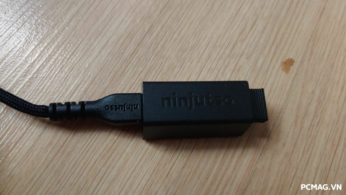 Một điểm cộng khác mà người viết đặc biệt yêu thích ở Ninjutso Sora chính là cáp sạc. Dù chỉ sạc qua USB Type-C truyền thống, không hỗ trợ sạc không dây hay dock sạc, nhưng dây đi kèm lại là loại siêu mềm, mang cảm giác tương tự mẫu dây trên Corsair Sabre RGB Pro – một trong những loại cáp khiến người viết ấn tượng nhất trước đây. Điều này giúp việc sử dụng chuột khi cắm sạc vẫn rất thoải mái, không bị cứng hay vướng víu như nhiều chuột không dây khác.