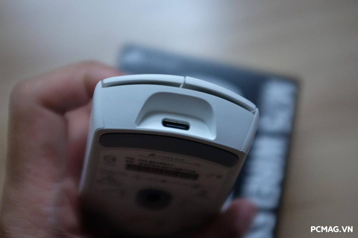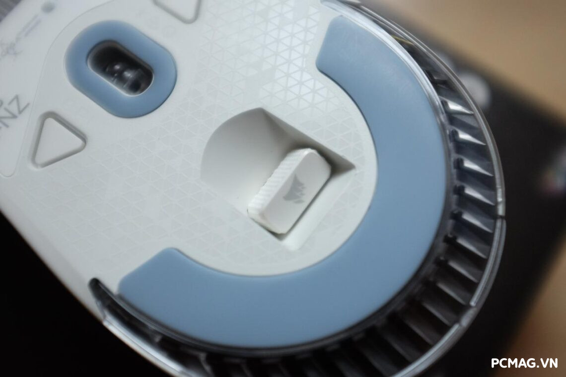 Điểm dễ nhận thấy nhất nằm ở adapter 2.4GHz. Dù Corsair trang bị cơ chế giữ bằng nam châm trong khoang dưới đáy chuột, nhưng cách làm này chưa mang lại sự chắc chắn như hộc chứa vật lý riêng biệt—vốn từng xuất hiện trên Corsair Harpoon RGB Wireless. Chỉ cần một cú lắc nhẹ, adapter hoàn toàn có thể rơi ra ngoài, gây bất tiện nếu bạn thường xuyên mang chuột theo bên mình.
