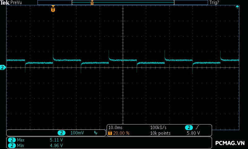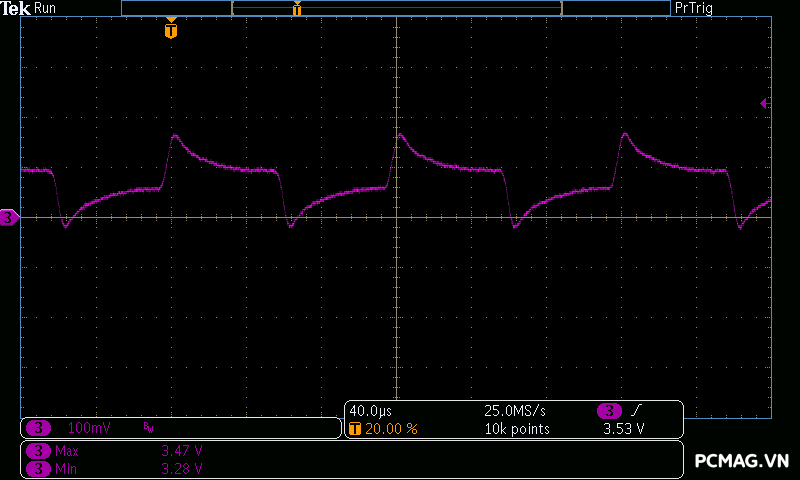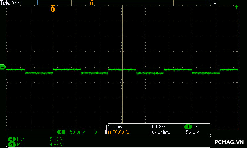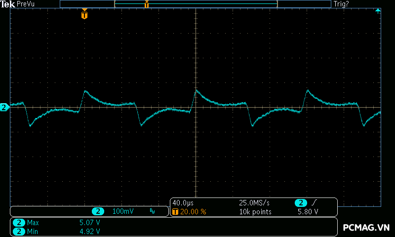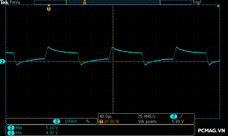Đặc biệt, ở bài test mô phỏng dòng tiêu thụ tức thời của card đồ họa (Power Excursion), bộ nguồn vượt qua một cách dễ dàng, điện áp vẫn giữ trong ngưỡng an toàn và không xuất hiện bất kỳ hiện tượng sụt áp hay “sập nguồn” nào, cho thấy khả năng đáp ứng tải đột ngột rất tốt của PSU.
