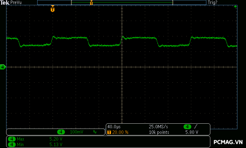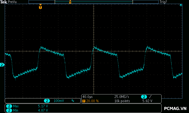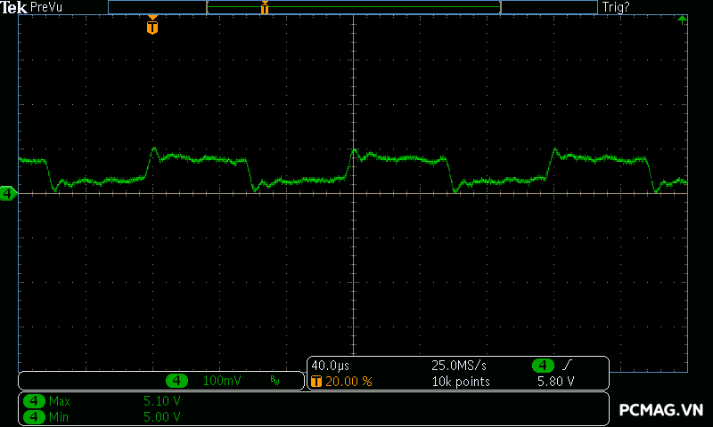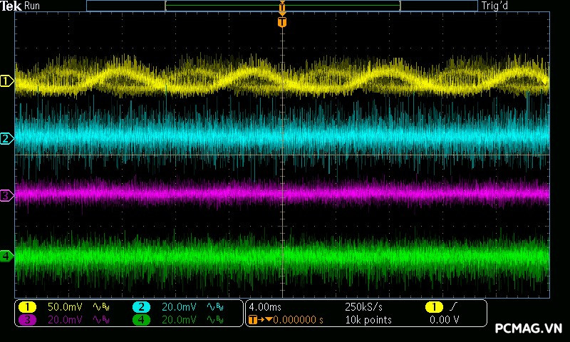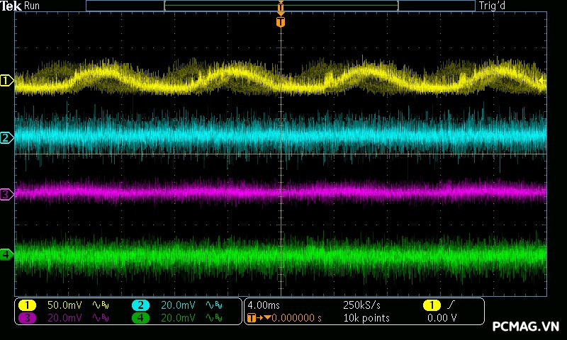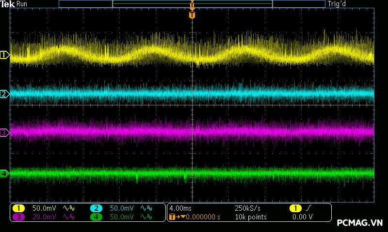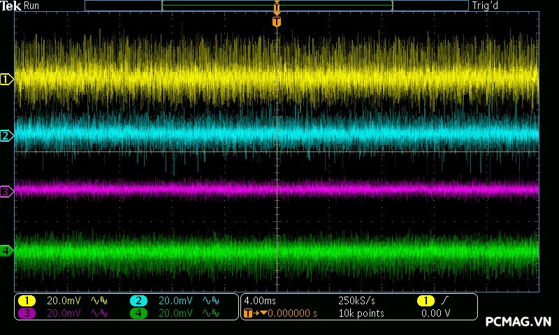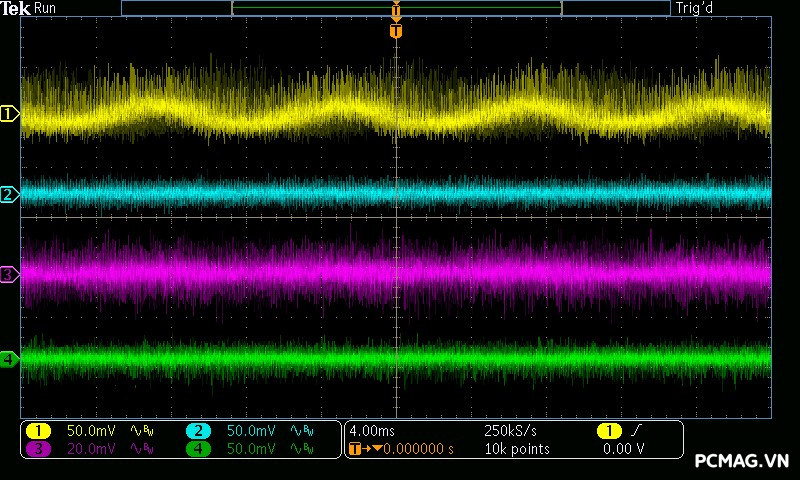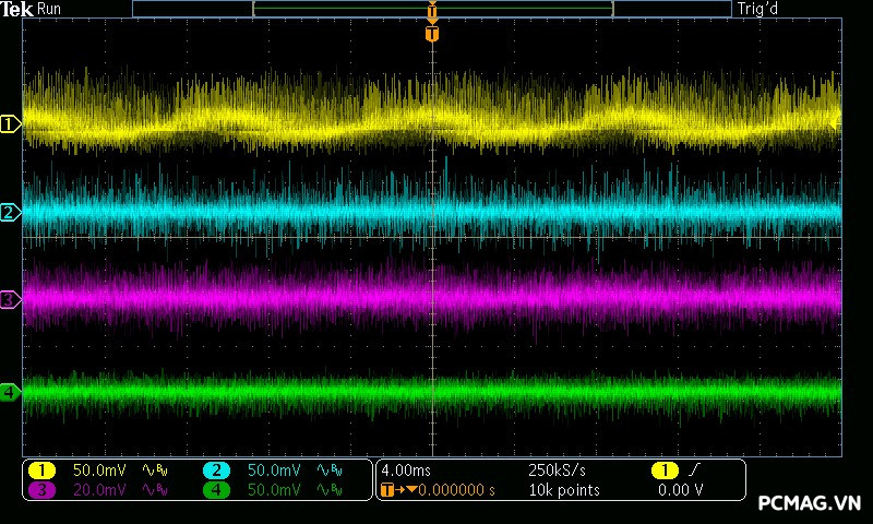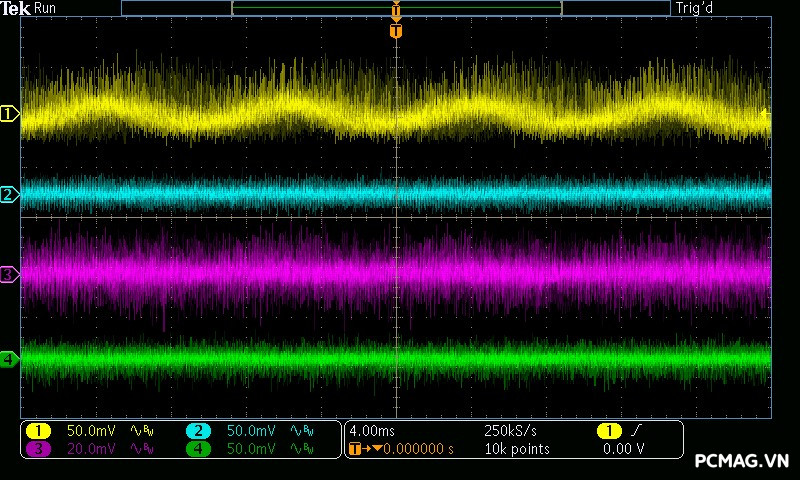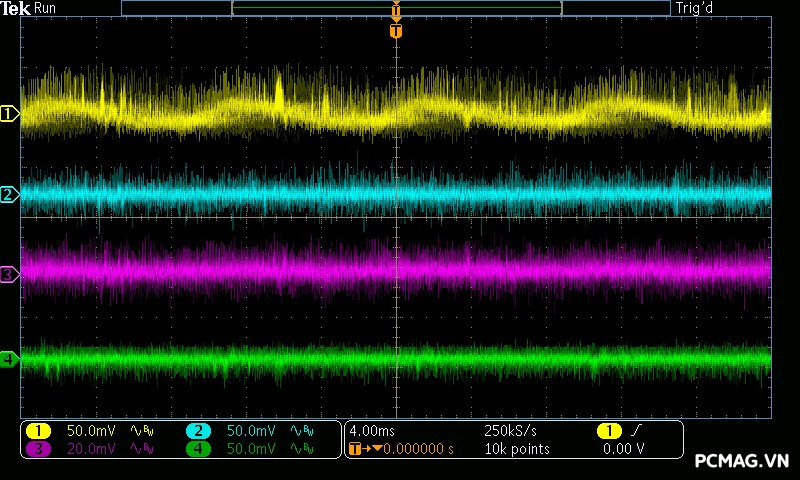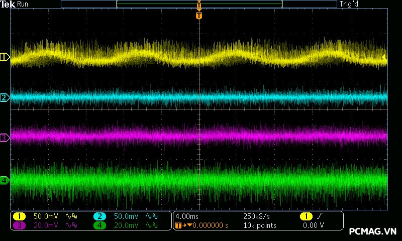 Các giá trị này vẫn nằm trong giới hạn cho phép của tiêu chuẩn ATX, tuy nhiên chưa thực sự ấn tượng nếu so với những bộ nguồn cao cấp có mức nhiễu được kiểm soát thấp hơn.