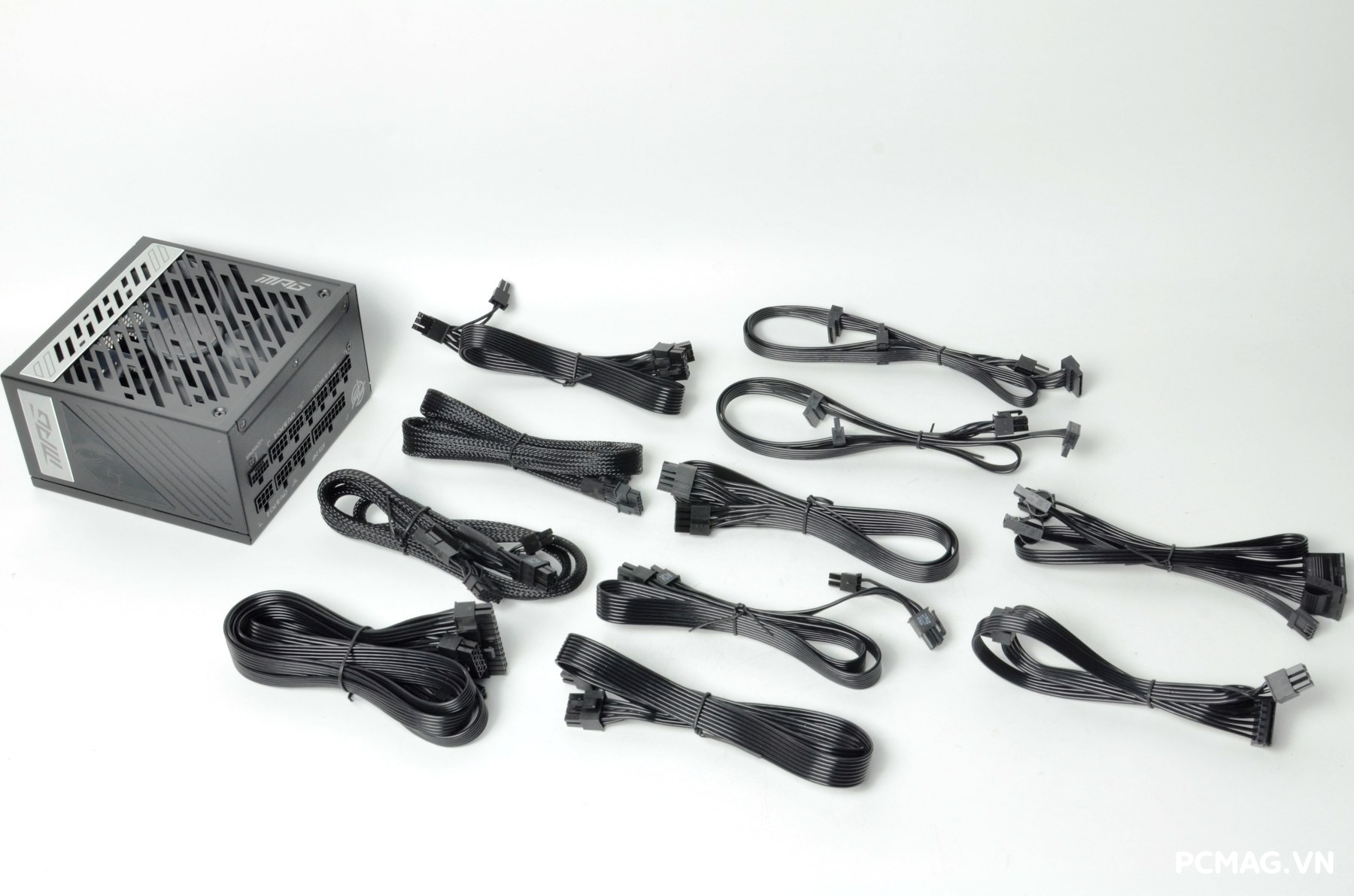 Hệ thống cáp của MSI MPG A850G 850W được thiết kế 100% dạng rời (full modular), giúp tối ưu việc đi dây và tăng tính thẩm mỹ cho hệ thống. Cụ thể bao gồm: