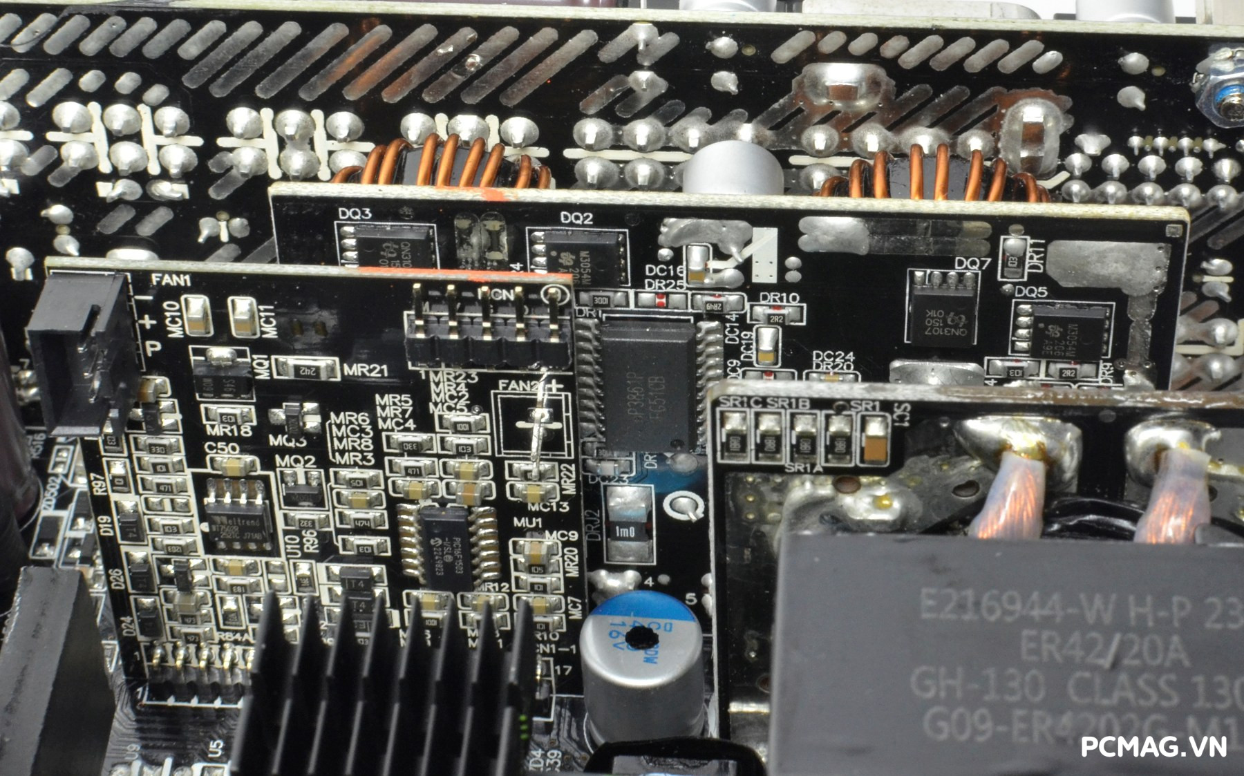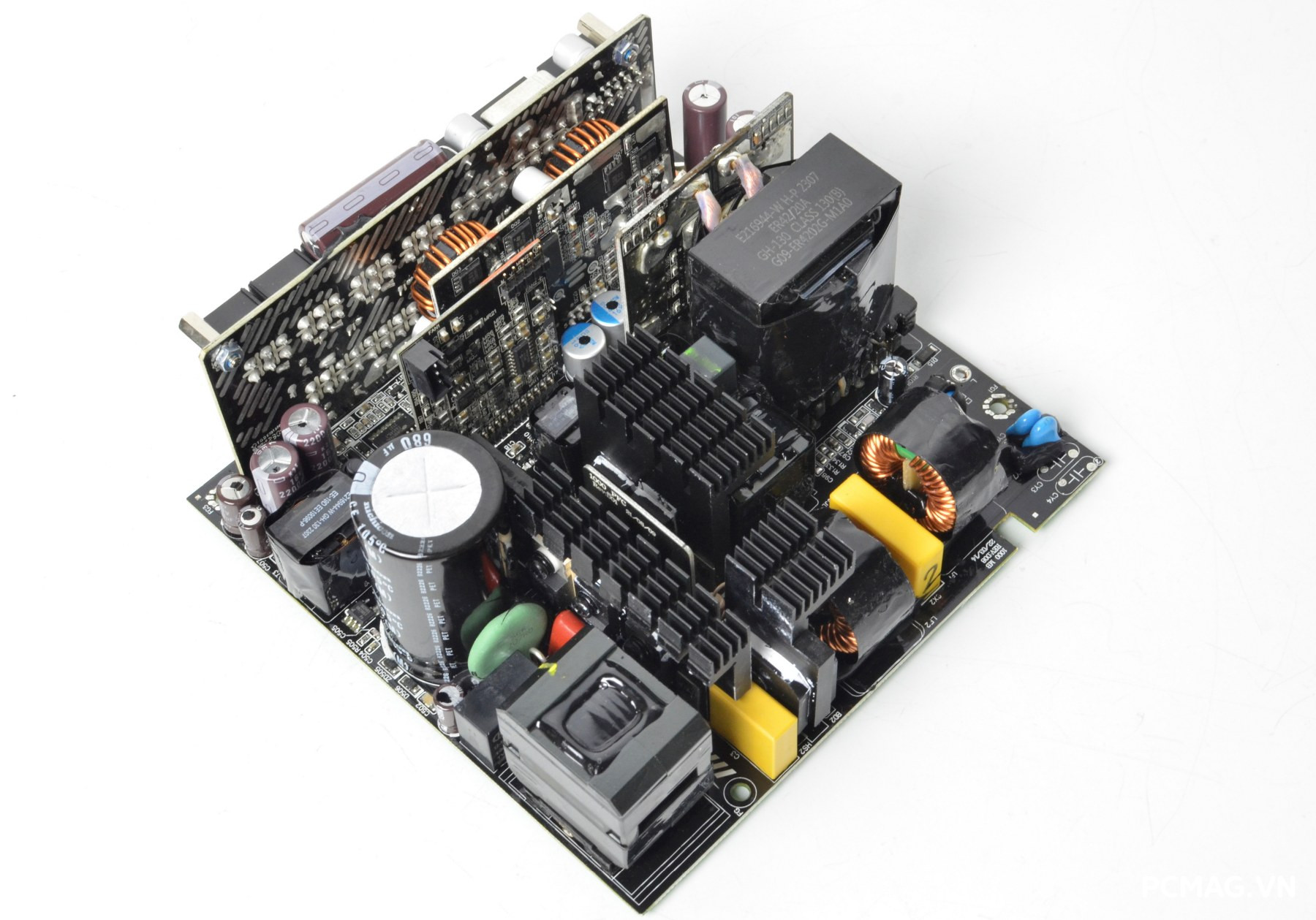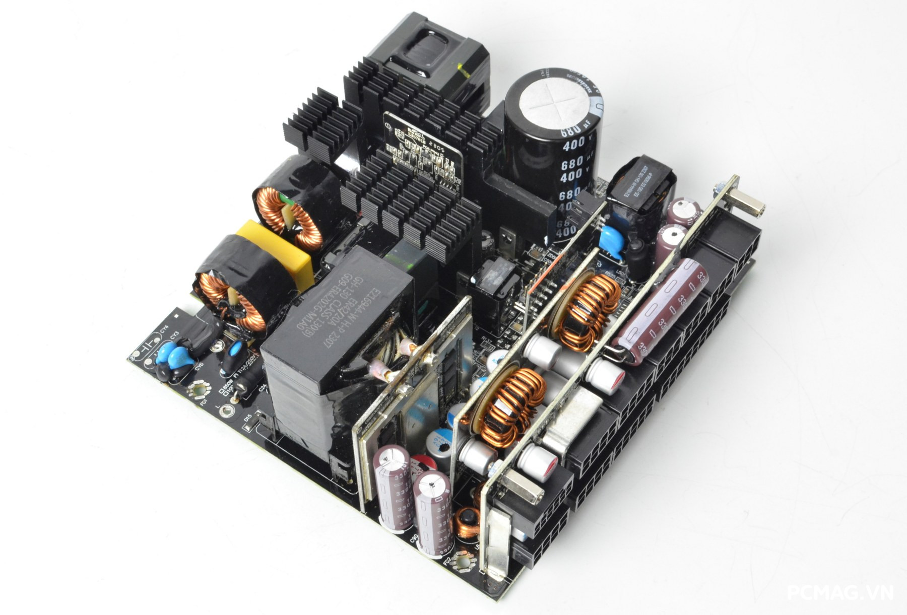 Bộ nguồn áp dụng nền tảng mạch hiện đại với các công nghệ tiên tiến như Active PFC, cộng hưởng LLC, chỉnh lưu đồng bộ (SR) ở ngõ ra, cùng mạch DC-to-DC cho đường điện 5V và 3.3V. Sự kết hợp này giúp tăng hiệu suất, cải thiện độ ổn định điện áp và đảm bảo hoạt động bền bỉ trong thời gian dài.