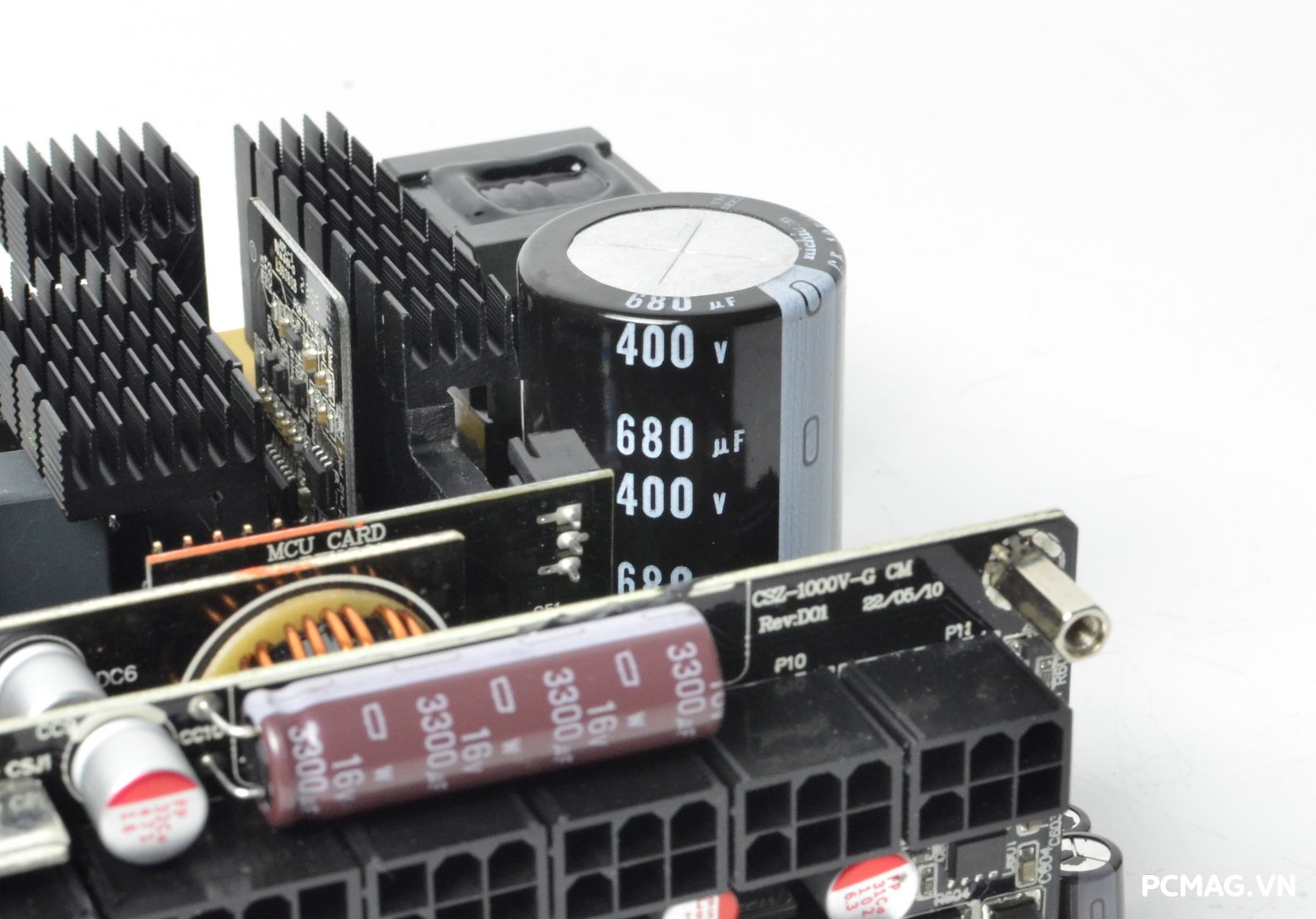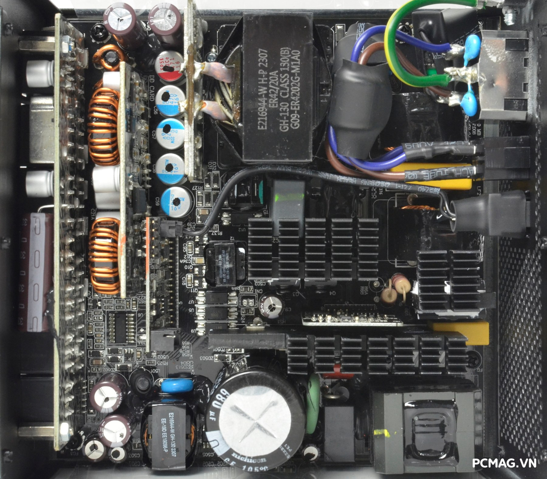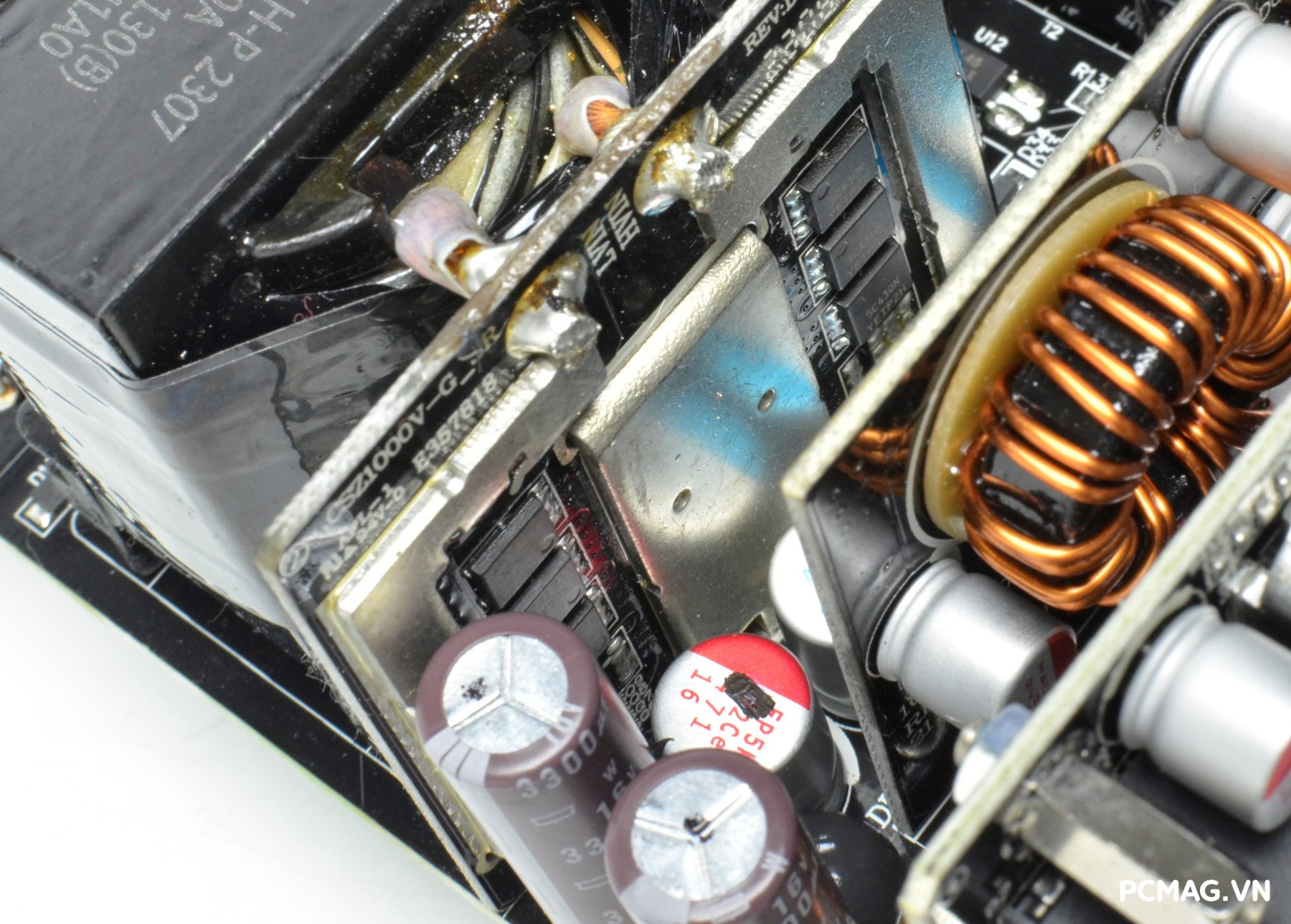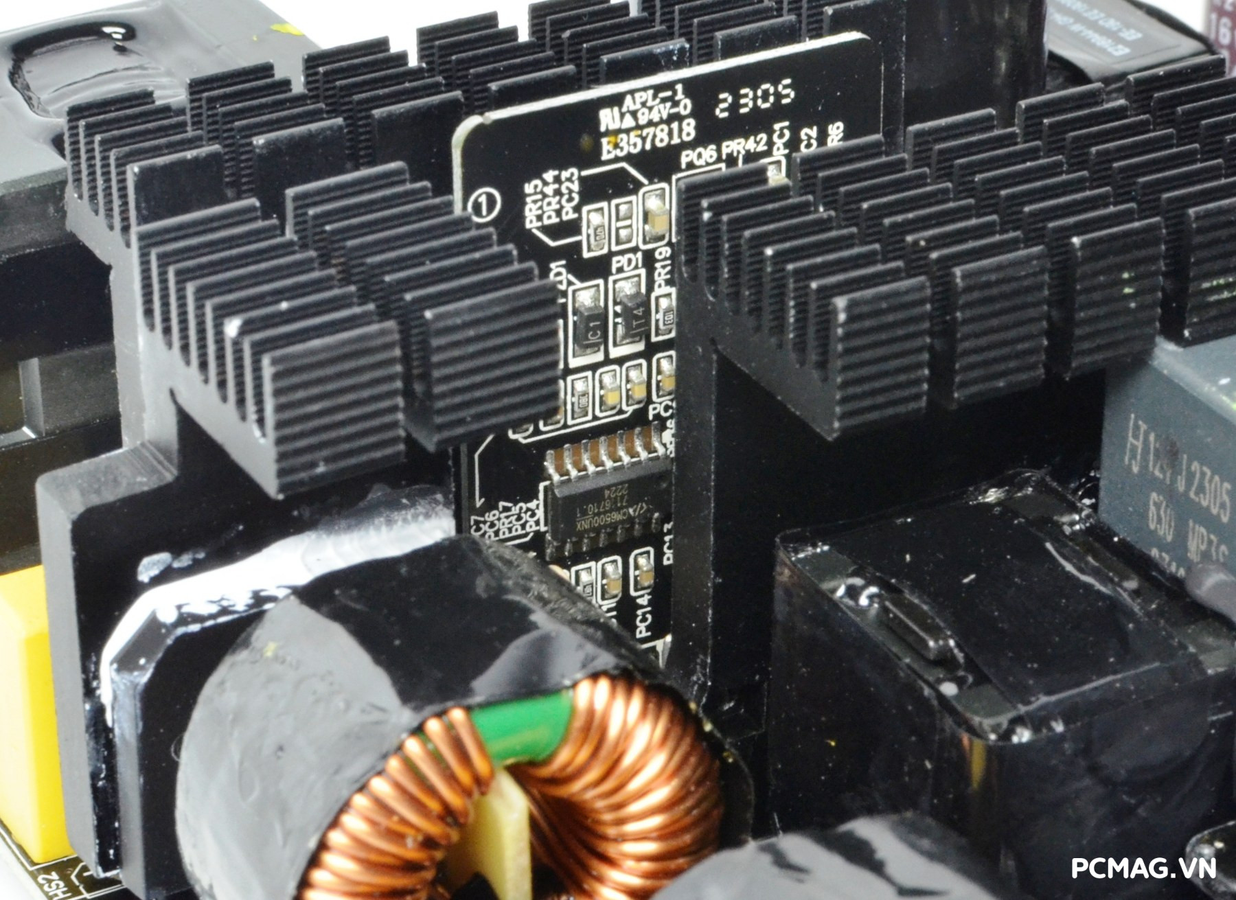 Bộ nguồn áp dụng nền tảng mạch hiện đại với các công nghệ tiên tiến như Active PFC, cộng hưởng LLC, chỉnh lưu đồng bộ (SR) ở ngõ ra, cùng mạch DC-to-DC cho đường điện 5V và 3.3V. Sự kết hợp này giúp tăng hiệu suất, cải thiện độ ổn định điện áp và đảm bảo hoạt động bền bỉ trong thời gian dài.