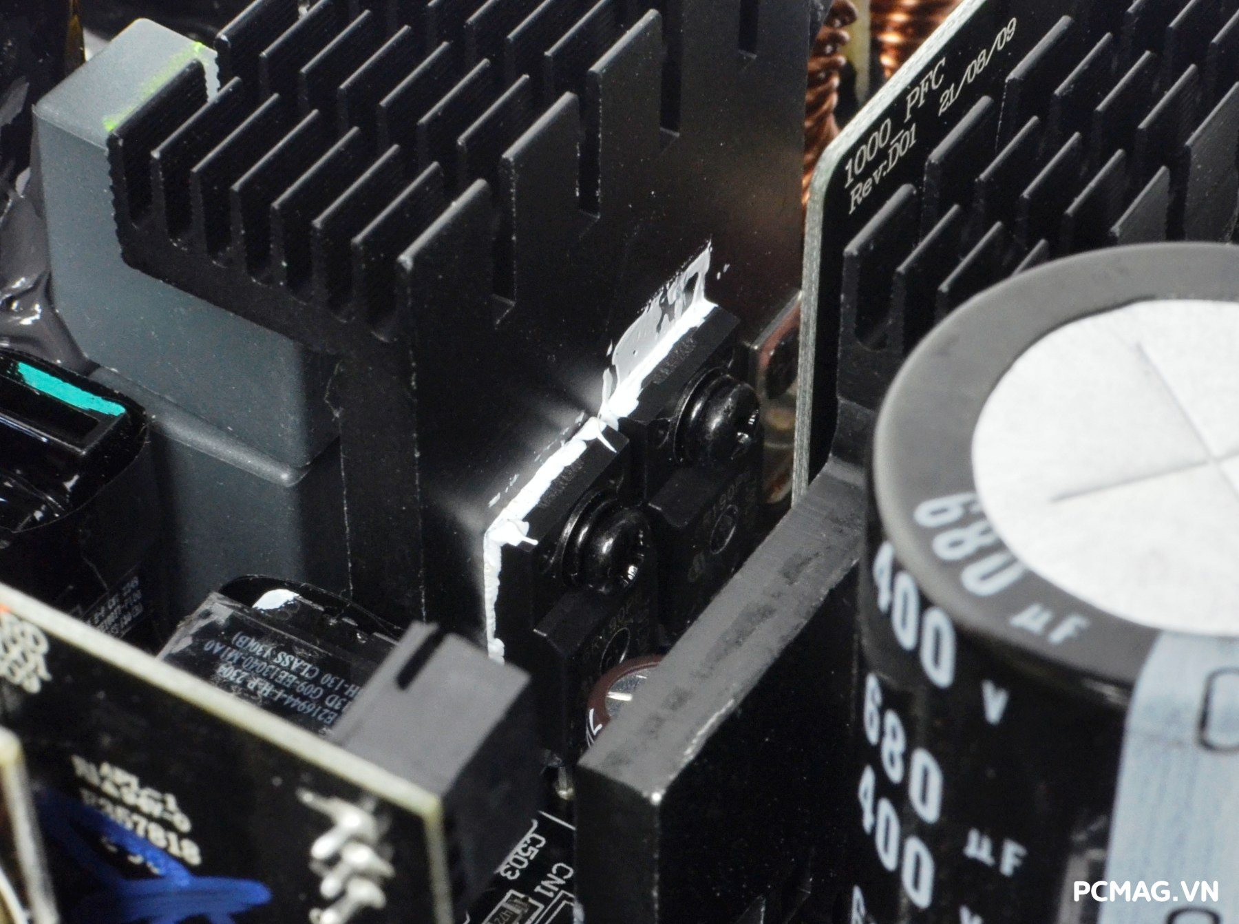Có tổng cộng 6 MOSFET ONsemi NVMFS5C430N (185A) đảm nhiệm vai trò chỉnh lưu đồng bộ cho đường 12V duy nhất của bộ nguồn, giúp tối ưu hiệu suất và giảm thất thoát năng lượng.