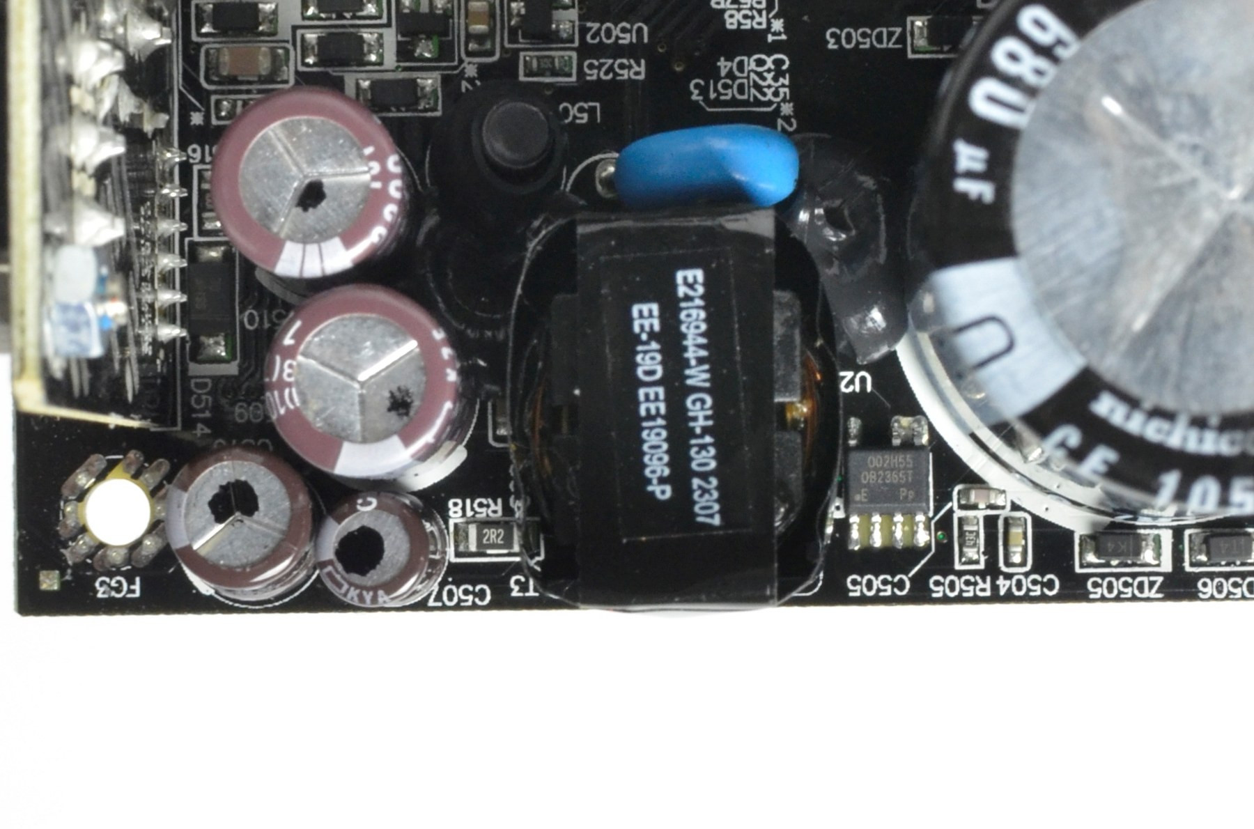 Hệ thống lọc nhiễu EMI được trang bị đầy đủ với 2 tầng lọc riêng biệt, giúp hạn chế tối đa nhiễu điện từ ảnh hưởng đến các linh kiện trong hệ thống. Ngoài ra, ngay trên dây dẫn từ cổng AC đầu vào còn được tích hợp lõi ferrite, góp phần tăng khả năng triệt nhiễu hiệu quả hơn.