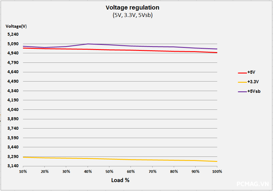 - Điện áp đầu ra ổn định, đáp ứng tốt chuẩn ATX 3.0 (power excursion lên đến 200%)