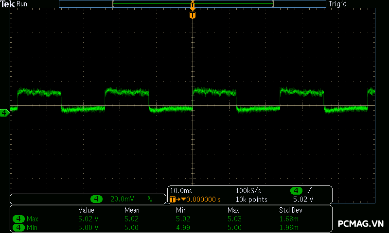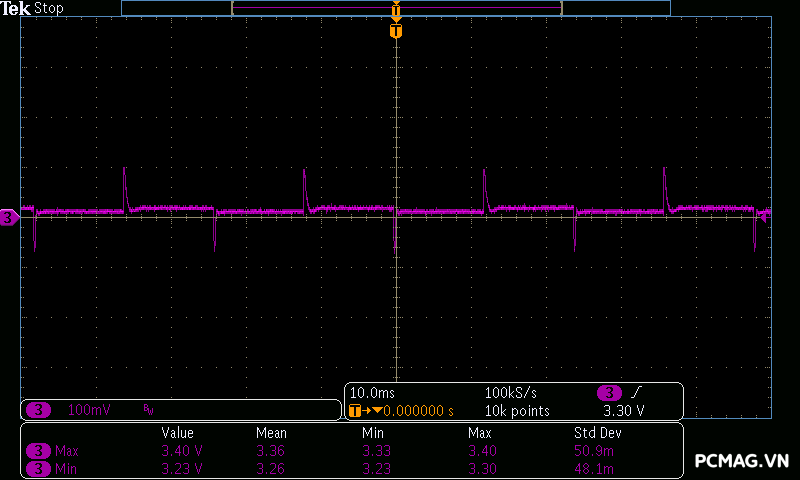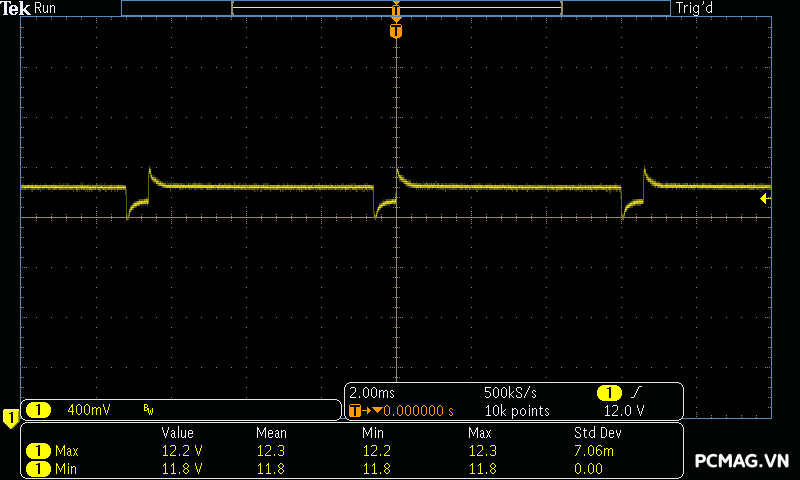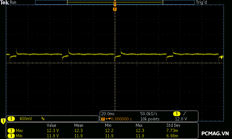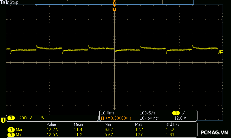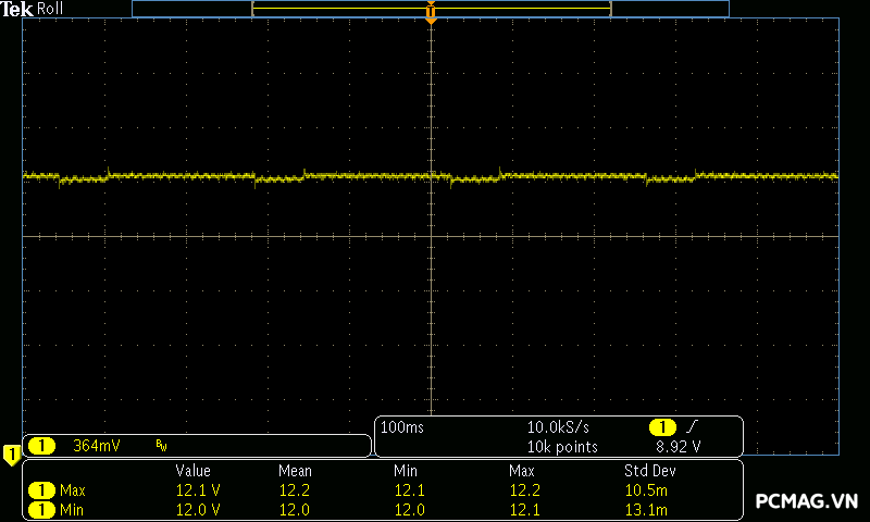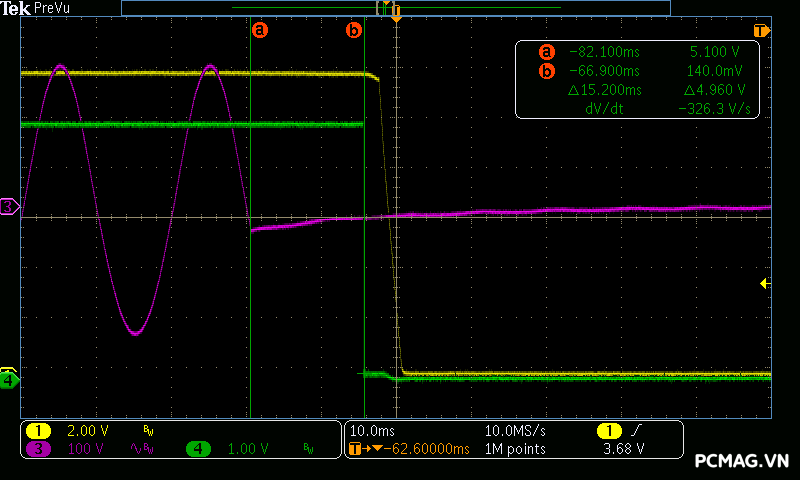 Kết quả này cho thấy bộ nguồn vẫn đảm bảo khả năng duy trì điện áp ổn định trong khoảng thời gian ngắn khi mất điện, đáp ứng đúng yêu cầu của tiêu chuẩn ATX.