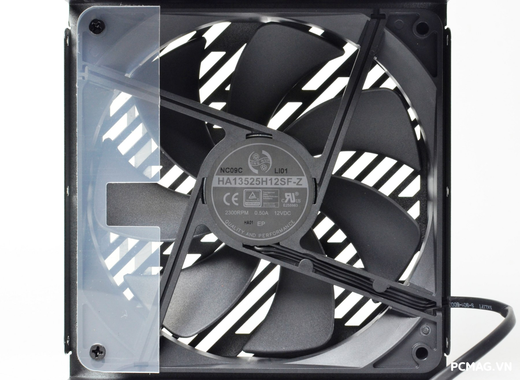 Quạt làm mát sử dụng model Honghua HA13525H12SF-2, hoạt động ở mức 12V – 0.50A, trang bị vòng bi FDB (Fluid Dynamic Bearing), giúp tăng độ bền, giảm tiếng ồn và đảm bảo khả năng vận hành ổn định trong thời gian dài.