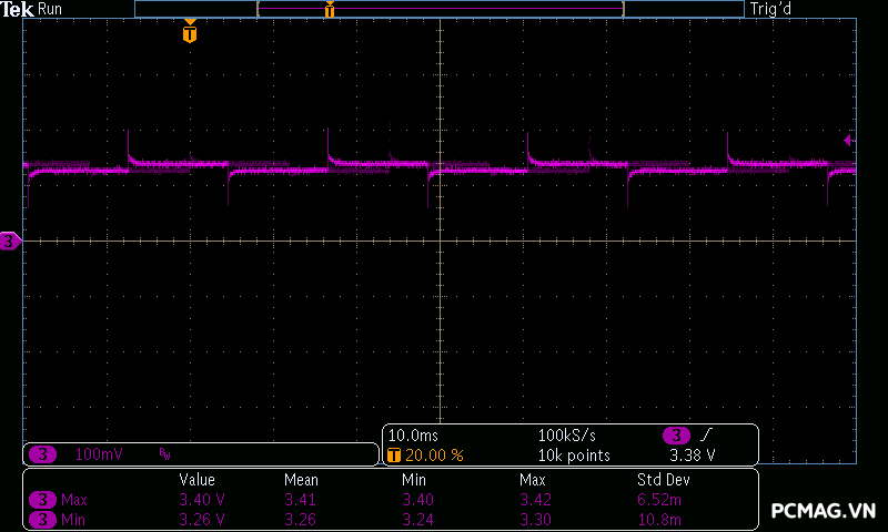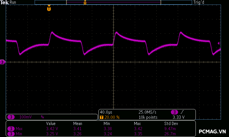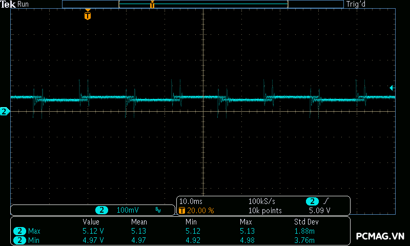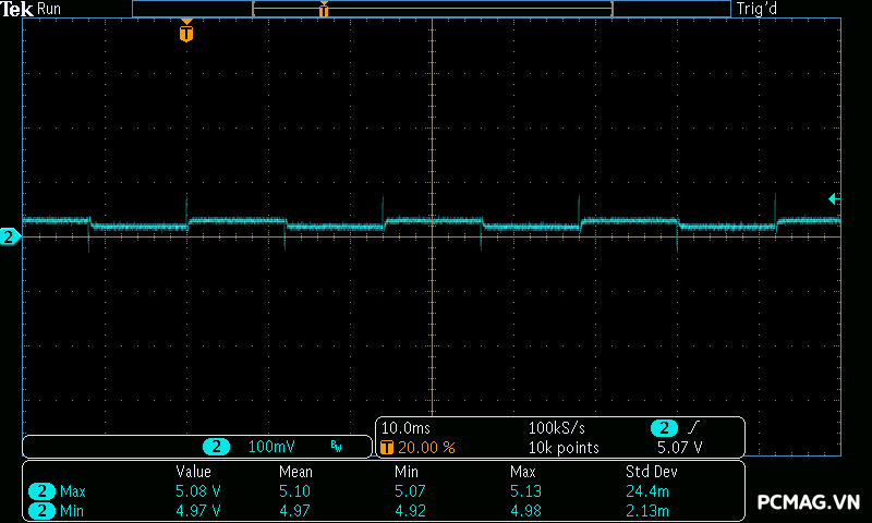 Điều này cho thấy thời gian duy trì điện áp đầu ra khi mất nguồn AC của PSU ngắn hơn mức tiêu chuẩn, tuy nhiên trong điều kiện sử dụng thực tế với hệ thống điện ổn định, yếu tố này thường ít ảnh hưởng đến quá trình vận hành của hệ thống PC.