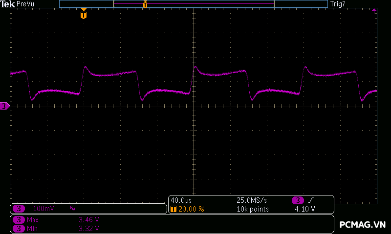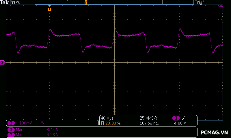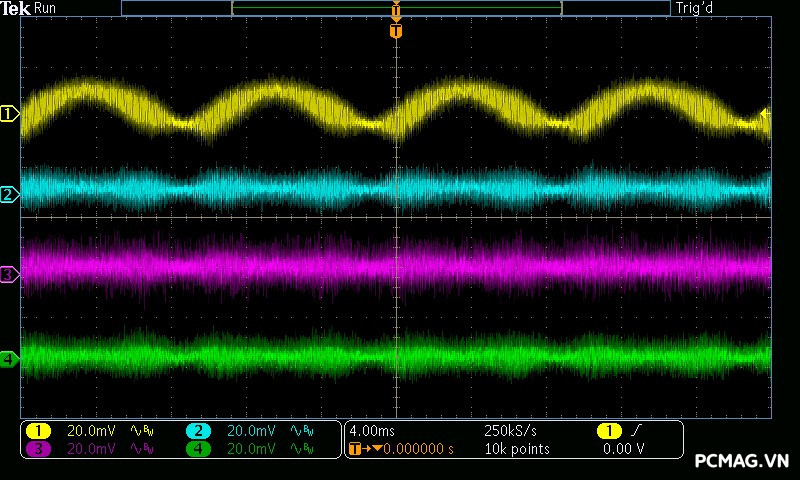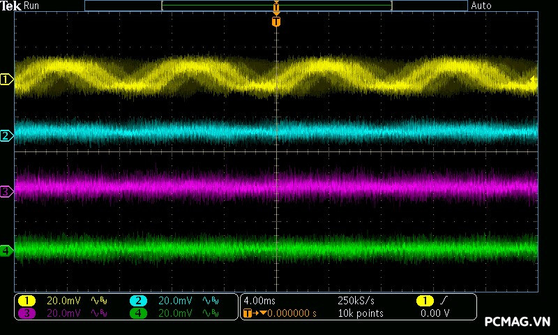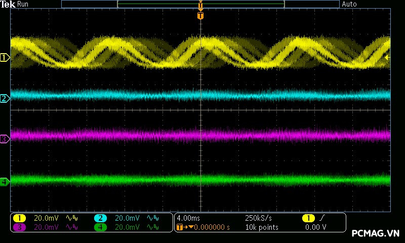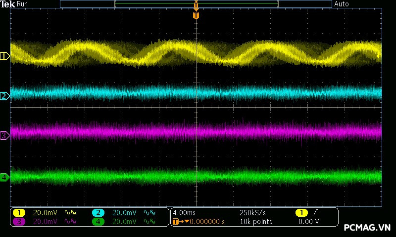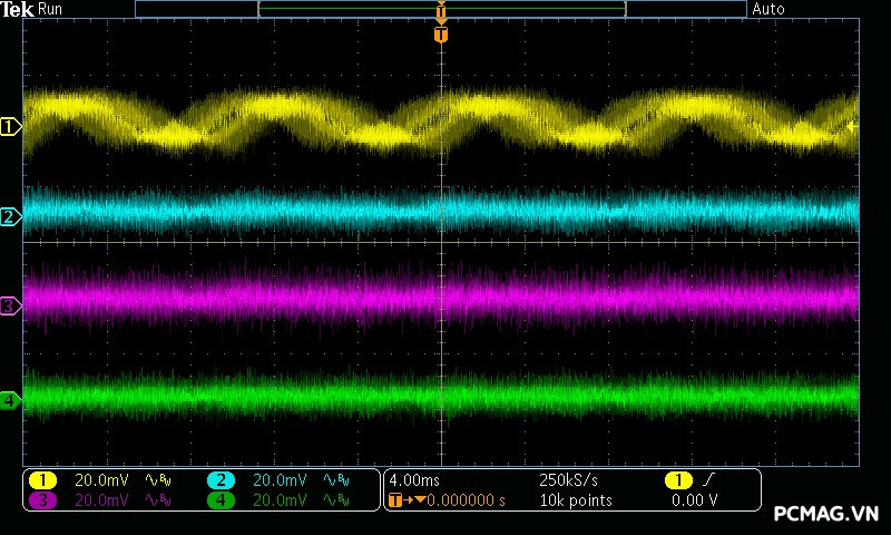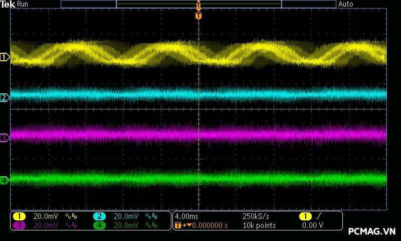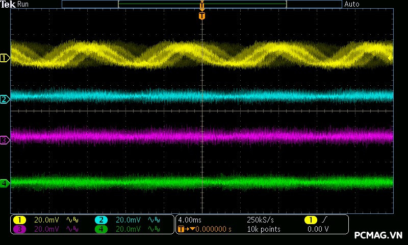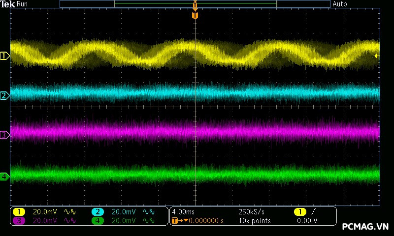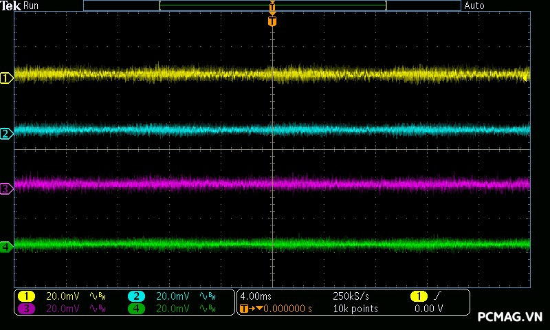 Trong bài kiểm tra nhiễu cao tần, Segotep PM850W ATX 3.1 / PCIe 5.1 cho kết quả rất tích cực khi toàn bộ các đường điện đều có mức ripple dưới 25mV.