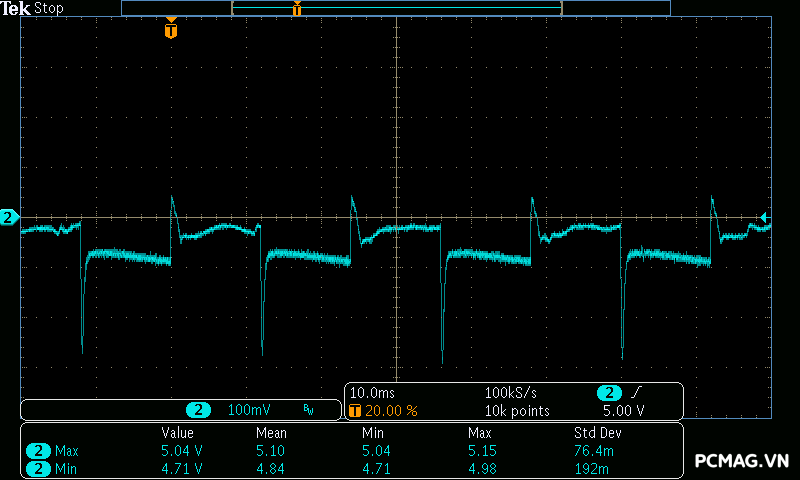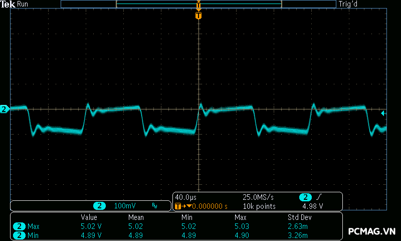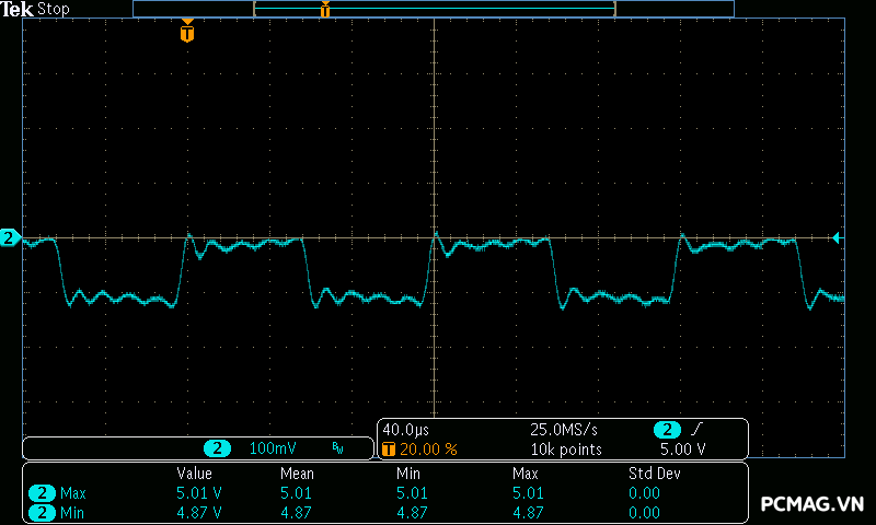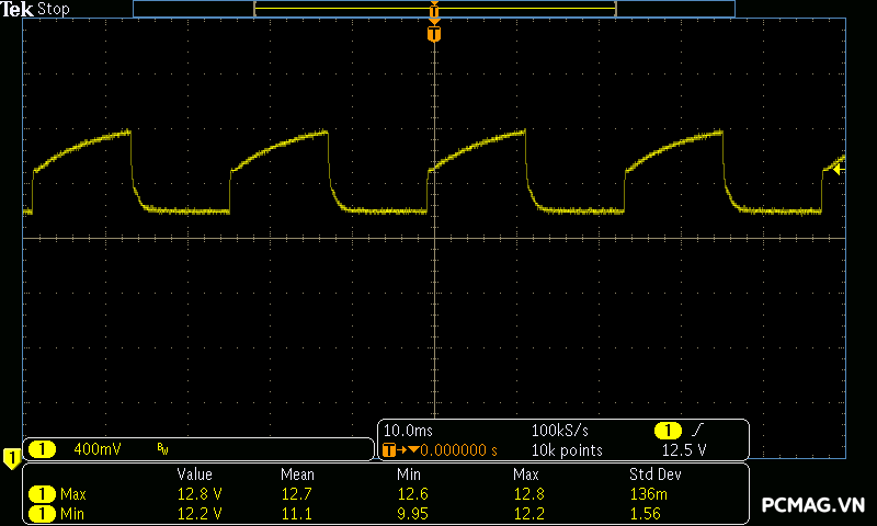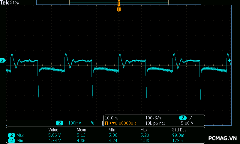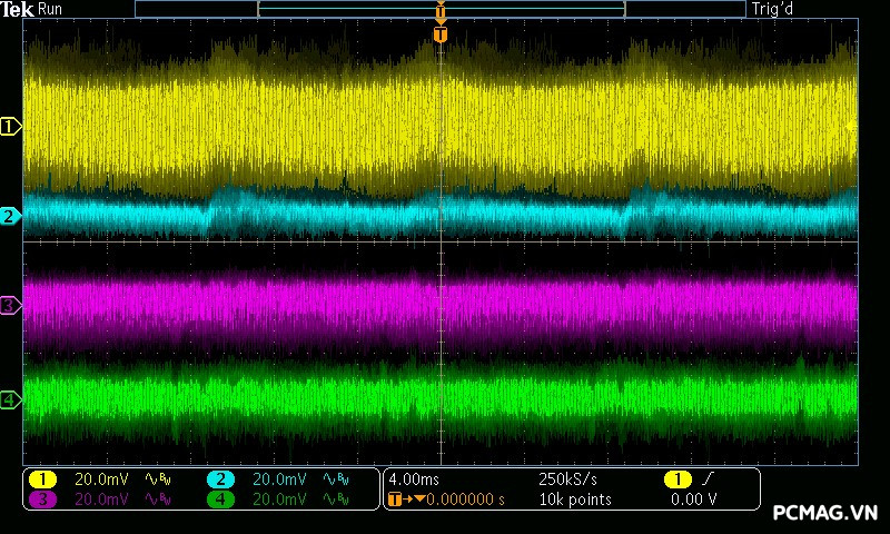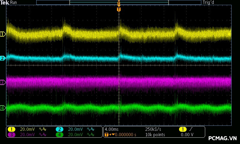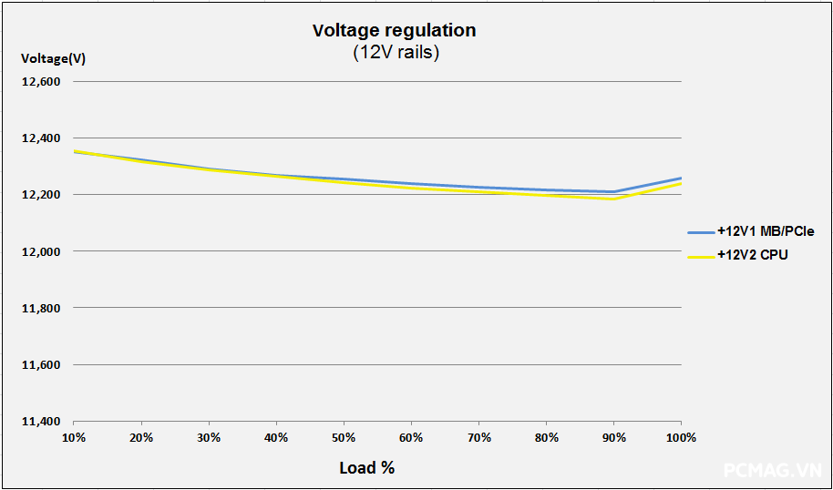Để đơn giản hóa việc đánh giá theo tiêu chuẩn ATX 3.0 của Intel, đường 12V được chia thành 2 nhánh trong bài test đối với nguồn single rail: