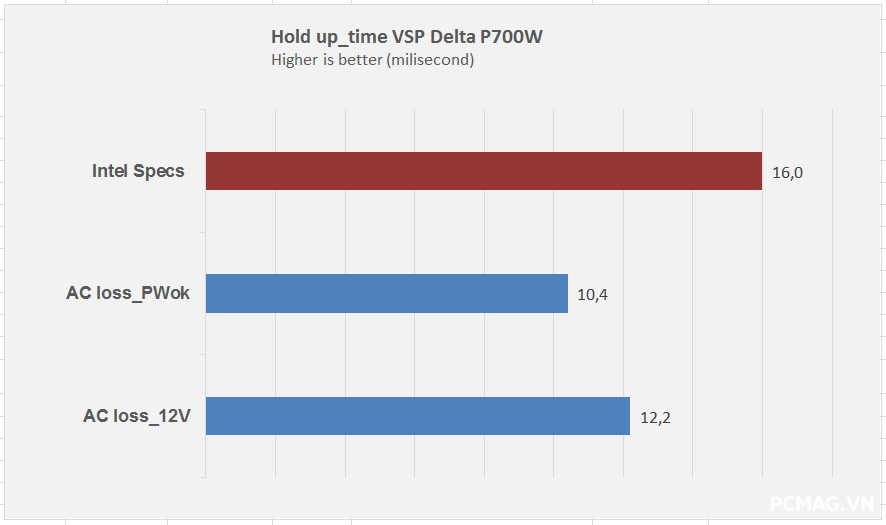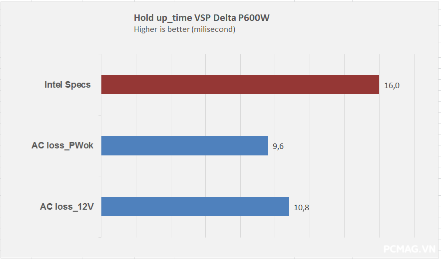 Thời gian lưu điện của Delta P600W & P700W vẫn còn thấp và chưa đạt được mức tiêu chuẩn theo yêu cầu của ATX.