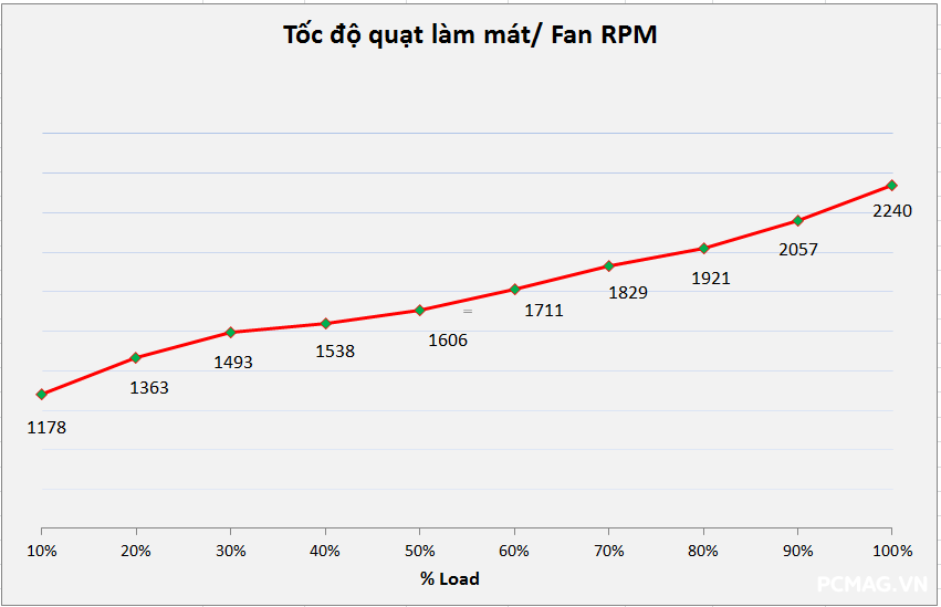 Tuy nhiên, đường cong quạt (fan curve) được thiết lập khá cao ngay từ đầu khiến PSU có xu hướng hoạt động ồn hơn khi tải nặng hoặc full load.