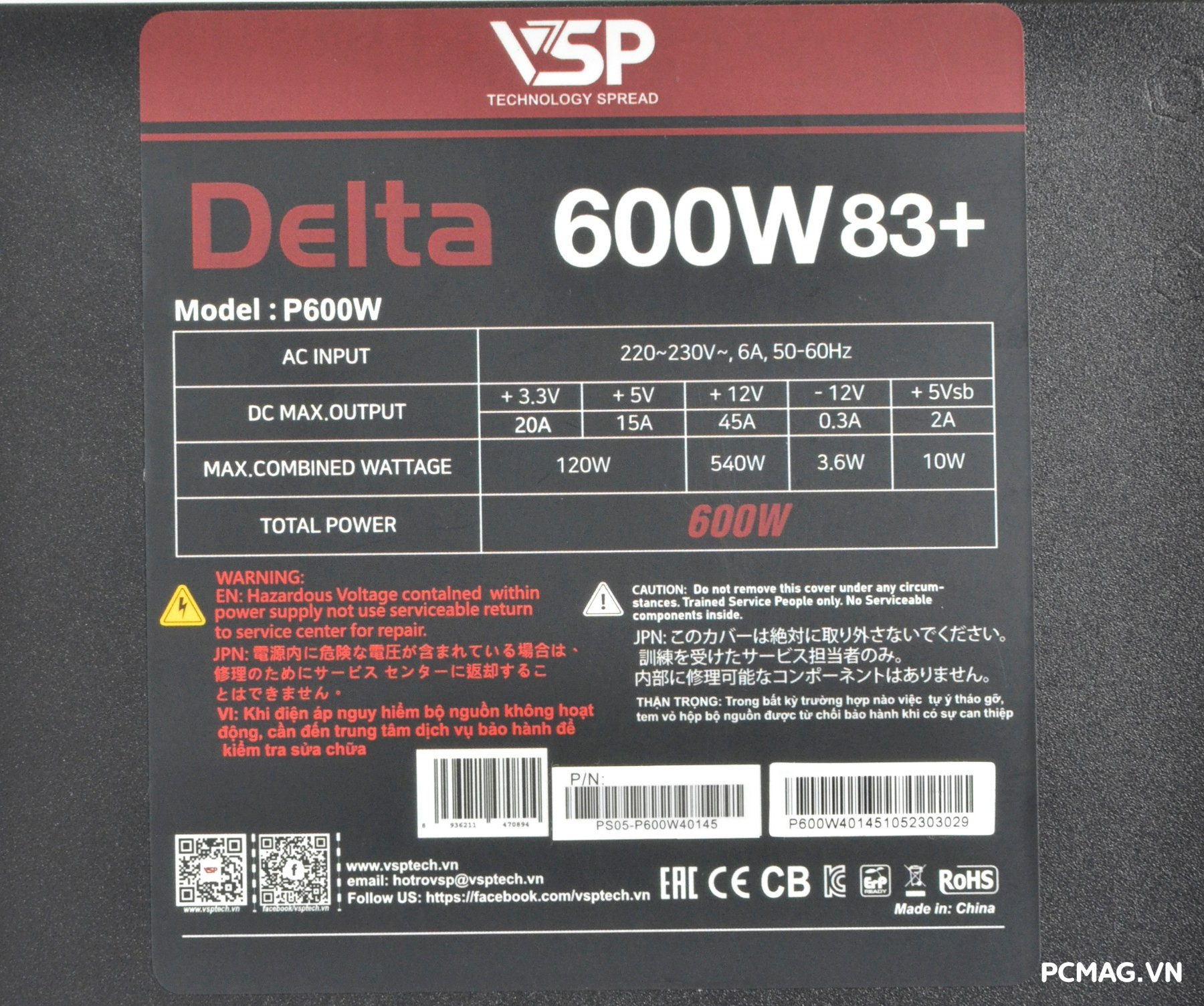 VSP Delta P600W & P700W mang lại chất lượng điện áp ở mức chấp nhận được, cùng hiệu suất thực tế đạt khoảng 83% @230Vac, đúng với công bố từ hãng. Nguồn được trang bị hệ thống cáp bẹ đen mềm, cùng 2 đầu cấp nguồn CPU, đáp ứng tốt nhu cầu build PC cơ bản.