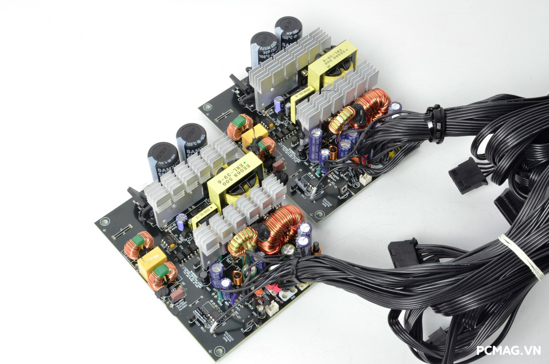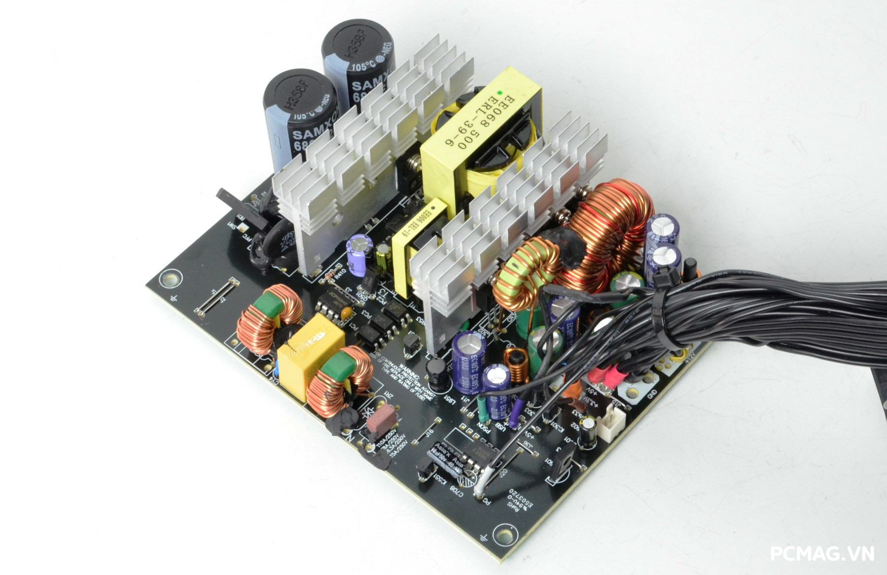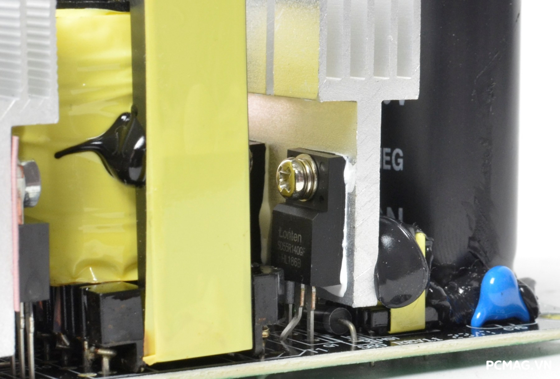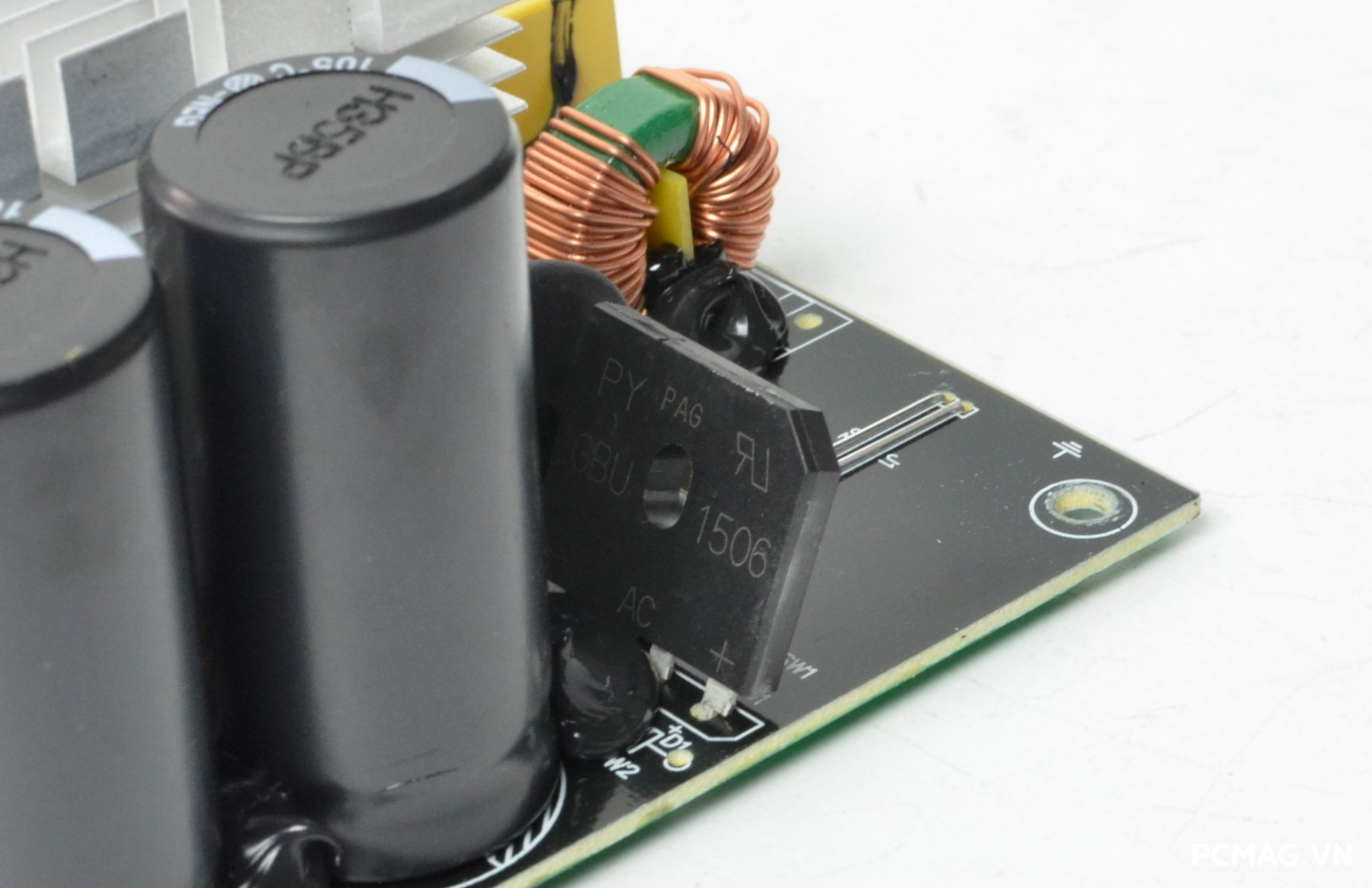 P600W sử dụng cặp tụ chính SAMXON dung lượng 680µF/200V, trong khi phiên bản P700W được trang bị tụ 820µF/200V mắc nối tiếp. Đây được xem là “dấu vết” của thiết kế mạch nhân đôi điện áp – thường xuất hiện trên các bộ nguồn có công tắc gạt chuyển điện áp 110–220V màu đỏ.