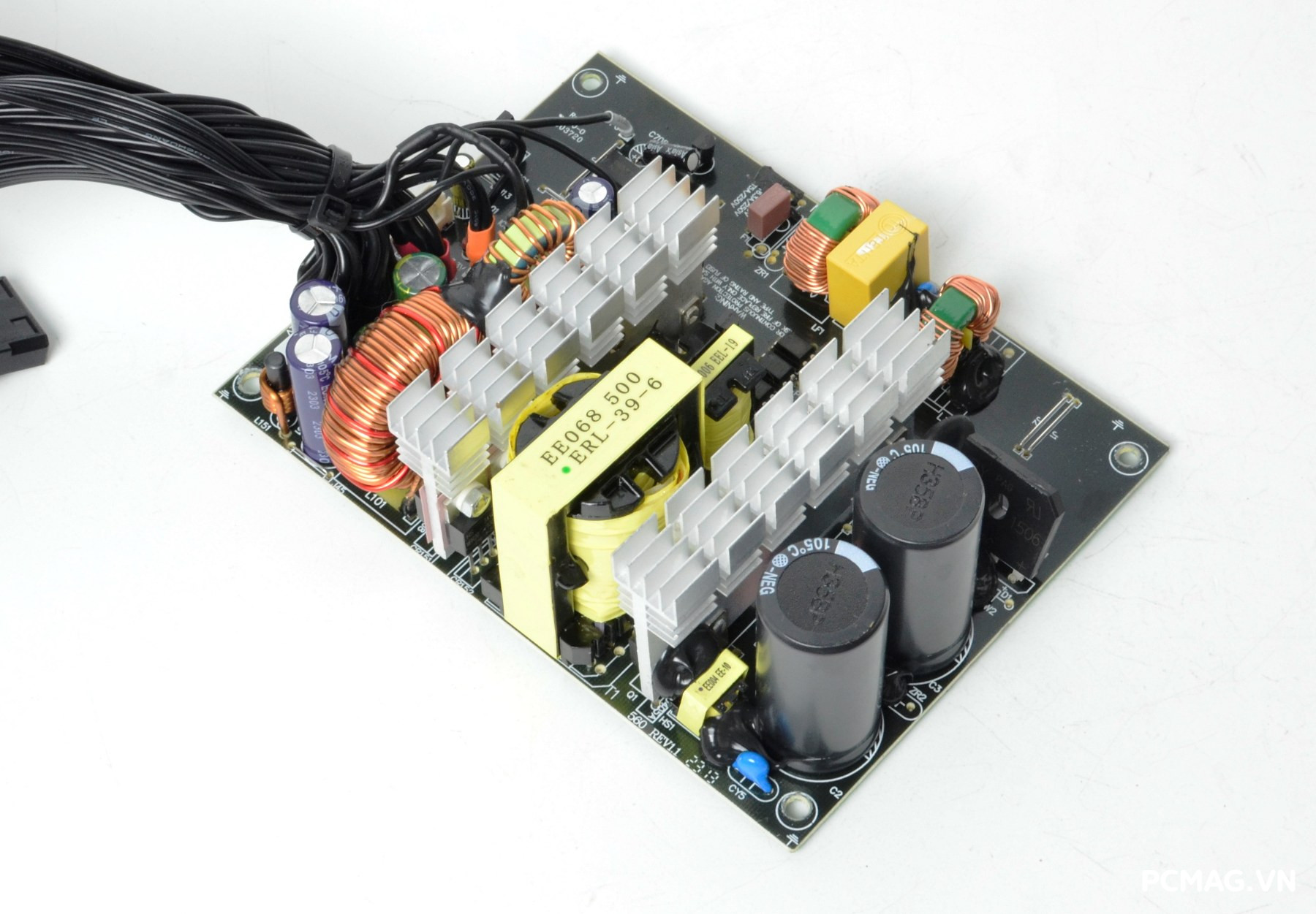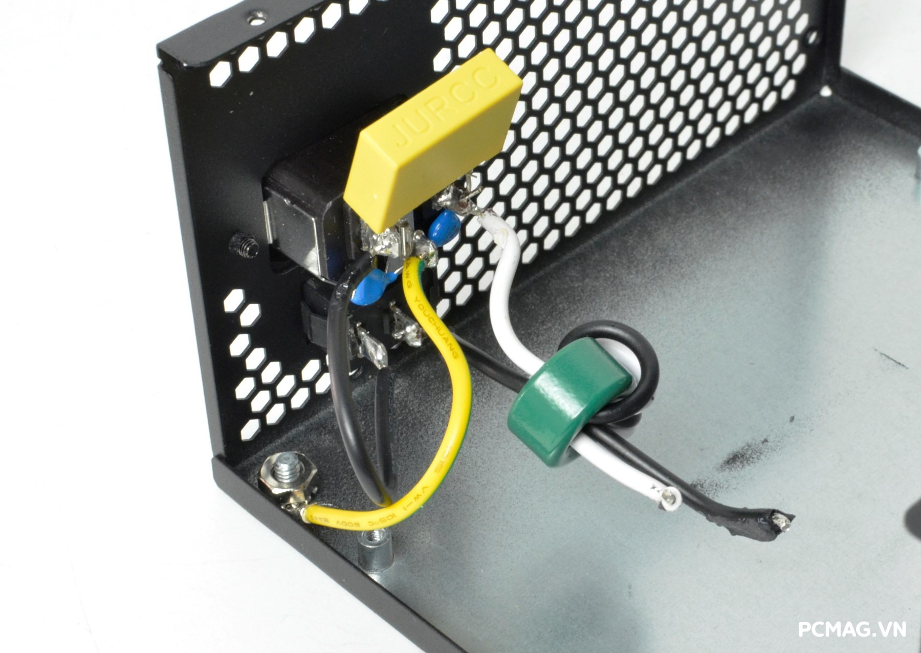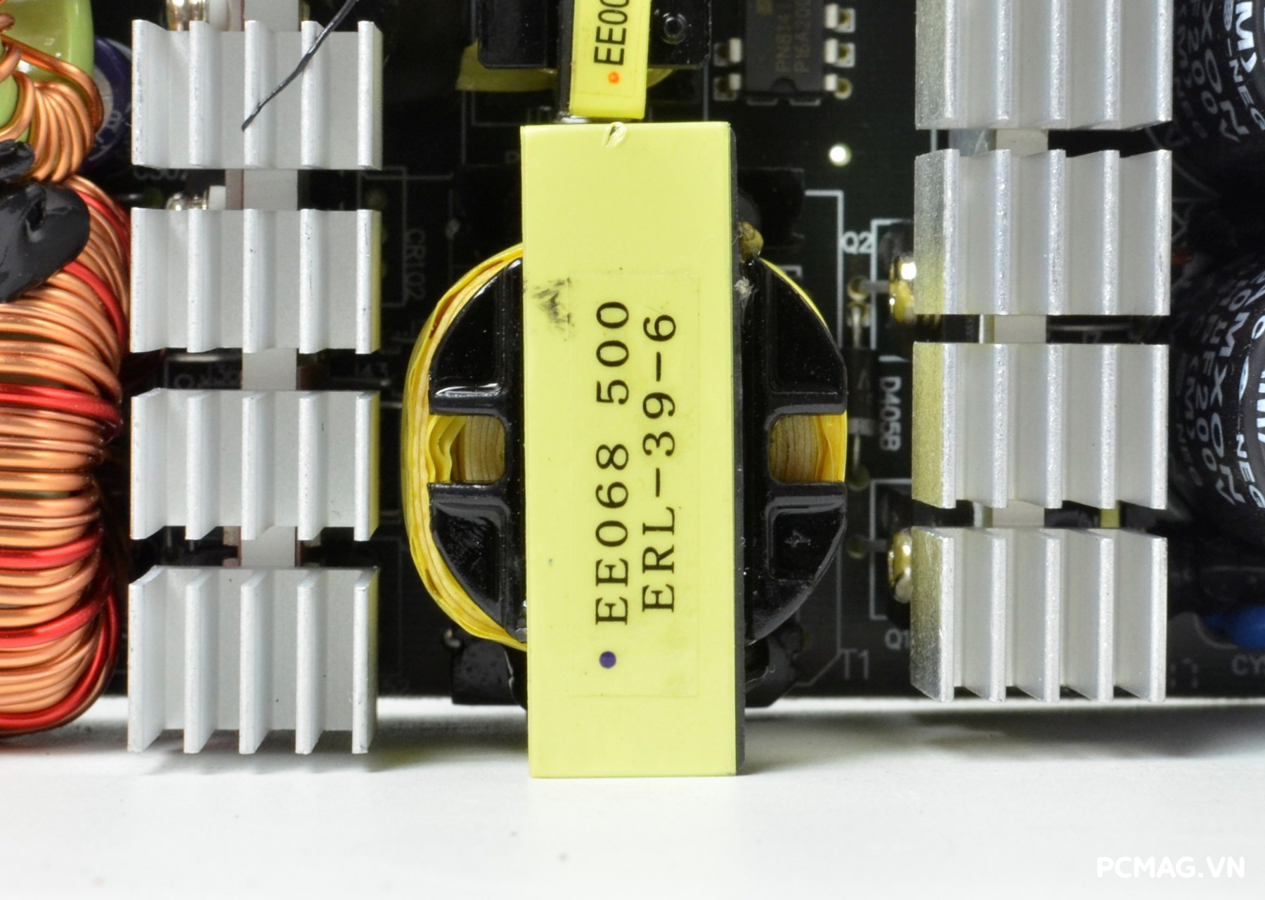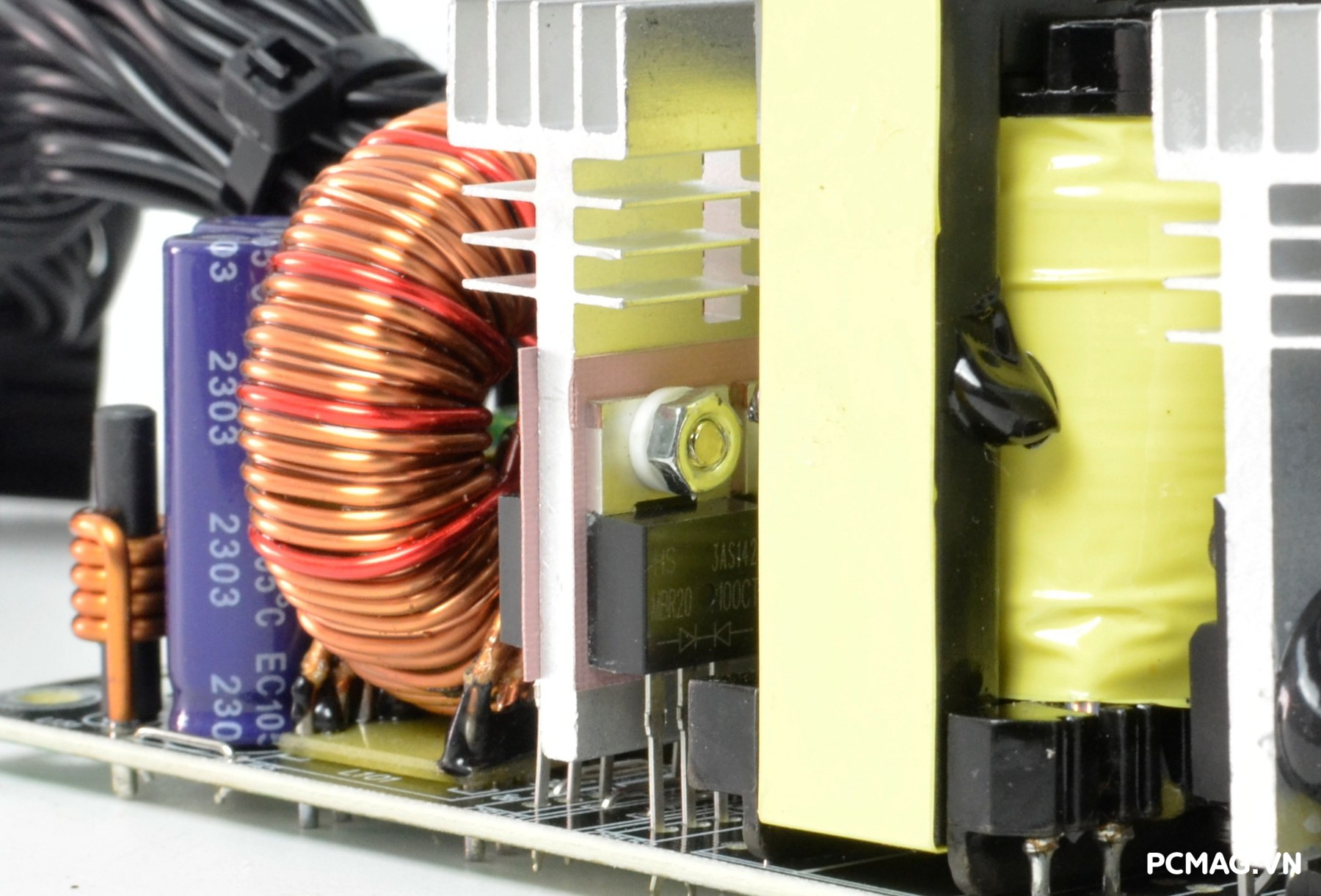 Mạch lọc nhiễu EMI được trang bị đầy đủ với thiết kế 2 tầng, giúp giảm thiểu nhiễu và đảm bảo tín hiệu điện ổn định. Đặc biệt, phiên bản P700W còn bổ sung thêm một cuộn lọc nhỏ đặt trên dây nguồn trước khi vào bo mạch chính, với các vòng dây quấn quanh lõi xuyến ferrite, góp phần tăng hiệu quả chống nhiễu.
