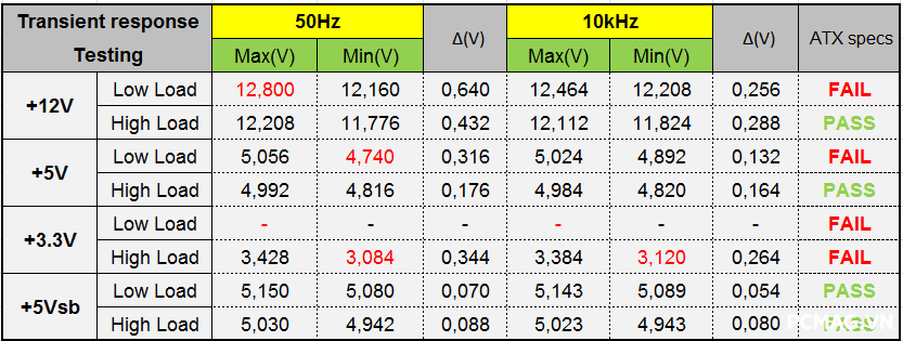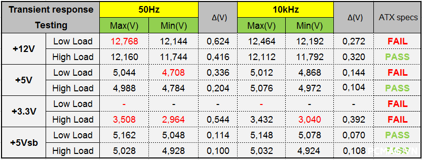 Trong bài test này, Delta P600W & P700W chỉ đáp ứng được khoảng 50% số hạng mục tải biến thiên. Với nền tảng công nghệ hiện tại (chuẩn ATX 2.3), việc đạt kết quả cao hơn là khá khó khi so sánh với các yêu cầu khắt khe của ATX 3.0/ATX12VO.