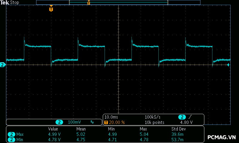 Để kiểm tra thông số này, sử dụng thiết bị đo chuyên dụng GW Instek GLC-9000 nhằm xác định chính xác mức dòng rò của PSU.