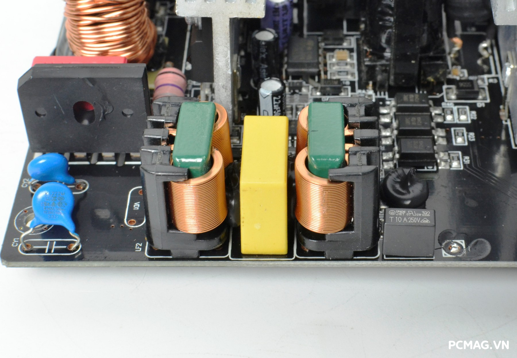 Mạch lọc EMI được trang bị khá đầy đủ với cấu trúc 2 tầng lọc, giúp hạn chế nhiễu điện hiệu quả trong quá trình hoạt động. Tuy nhiên, sản phẩm chưa được tích hợp linh kiện chống sét MOV, nên khả năng bảo vệ trước các xung điện áp đột biến vẫn còn hạn chế.
