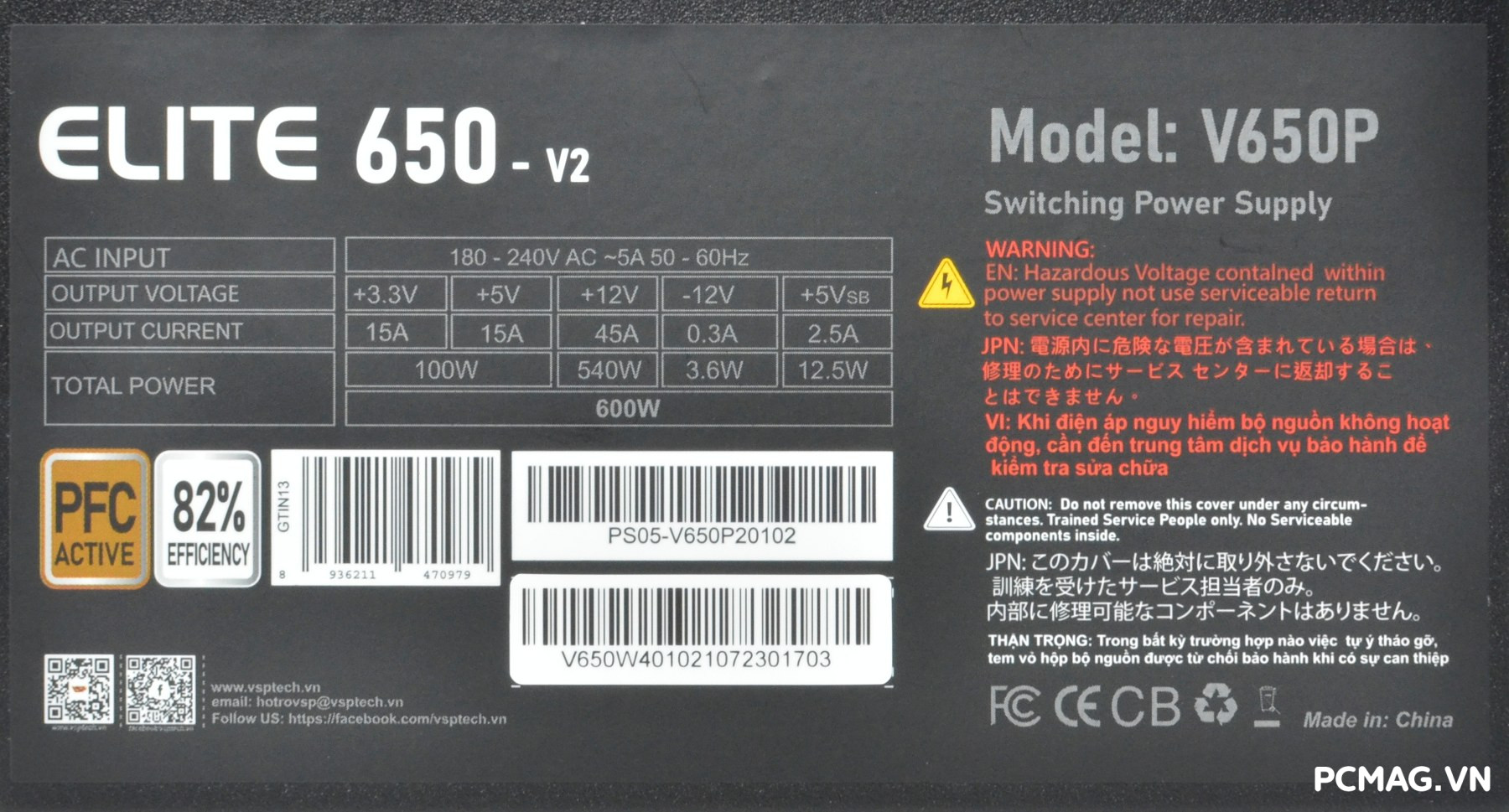Trong bài đánh giá từ PCMAG, phiên bản được thử nghiệm lần này là VSP Elite V2 V650P (600W) – mẫu nâng cấp trực tiếp từ dòng V550W vốn đã quen thuộc tại thị trường Việt Nam. Đây được xem là bước chuyển mình đáng quan tâm của VSP trong phân khúc nguồn phổ thông.