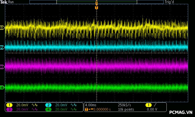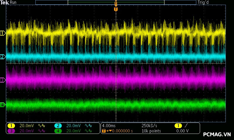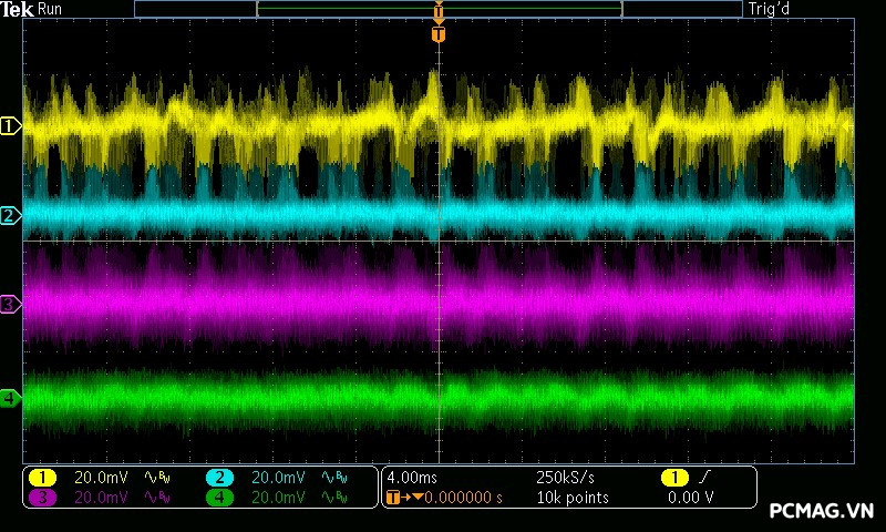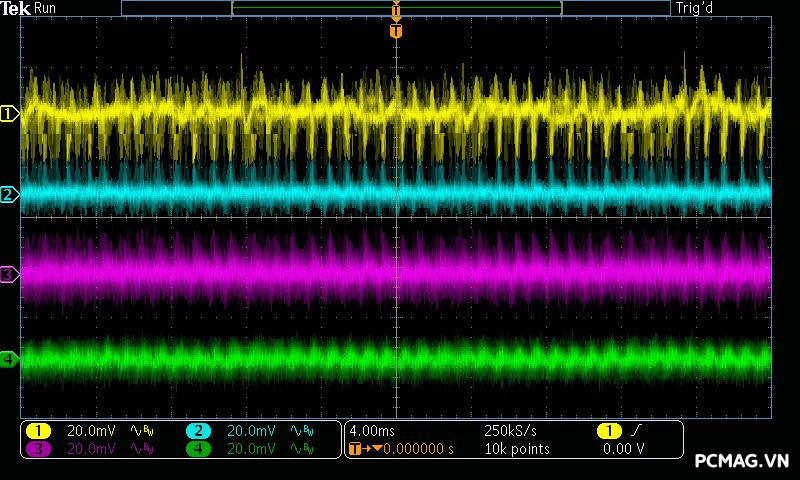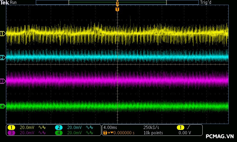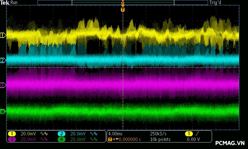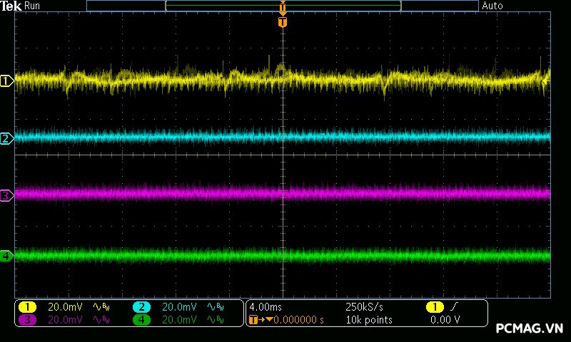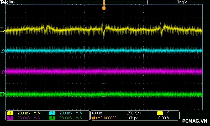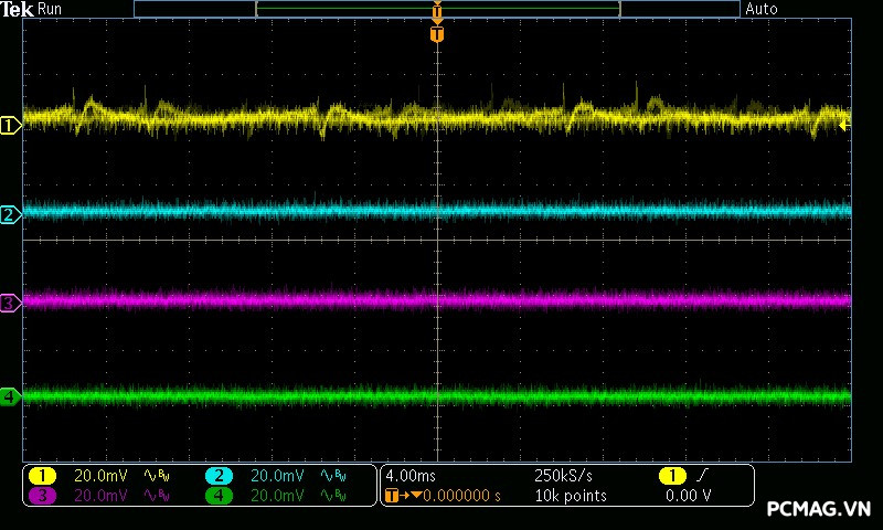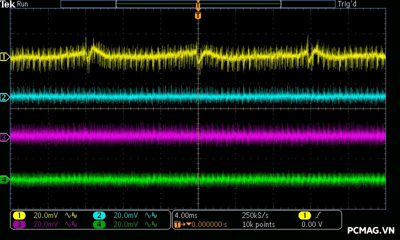 Trong bài kiểm tra Ripple & Noise, VSP Extreme TPS650 650W cho mức nhiễu điện áp ở mức khá đối với một bộ nguồn phổ thông. Các đường điện chính ghi nhận độ dao động khoảng xung quanh 50mV, vẫn nằm trong giới hạn cho phép của tiêu chuẩn ATX, đảm bảo hệ thống có thể hoạt động ổn định trong điều kiện sử dụng thông thường.