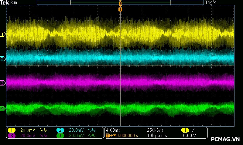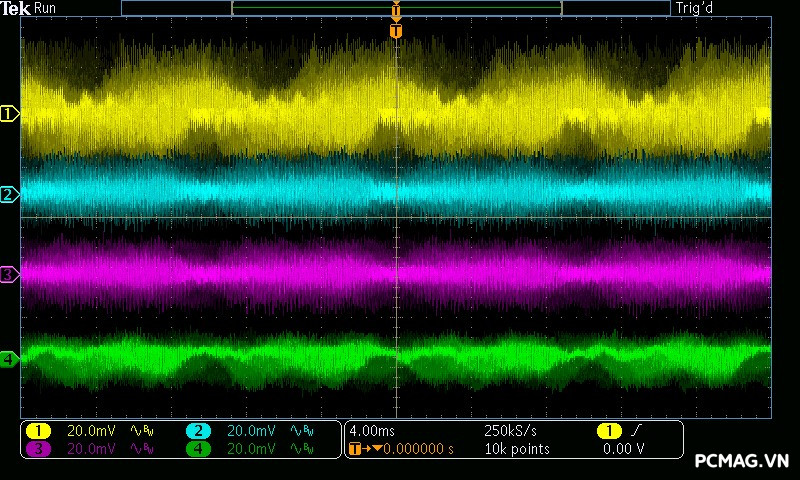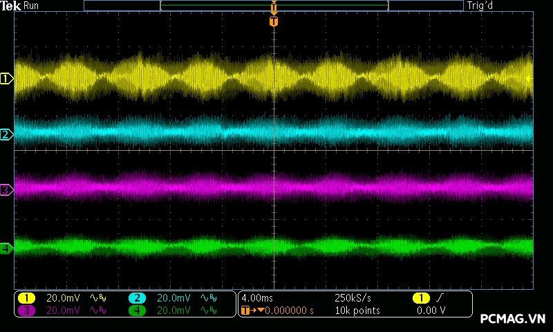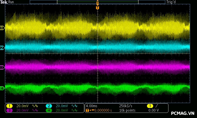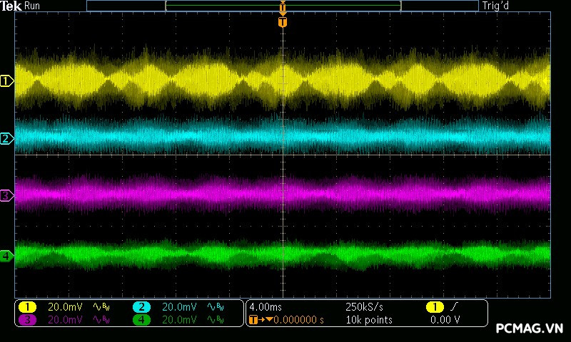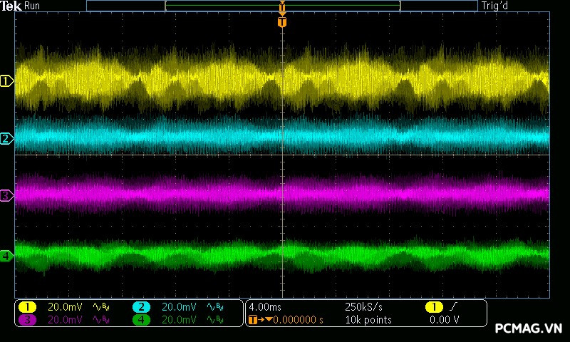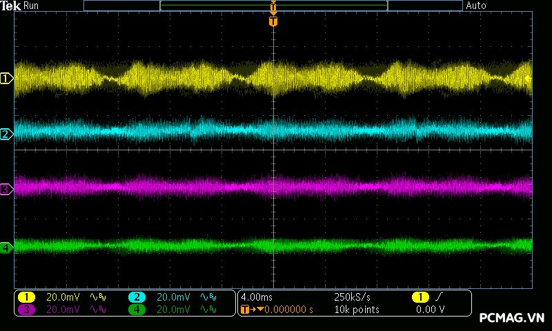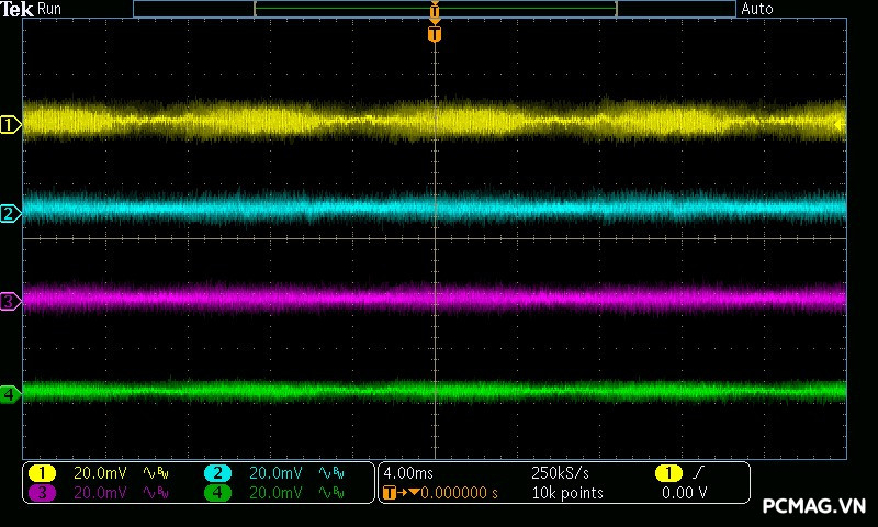 Trong bài đo nhiễu cao tần, VSP VGP650 PRO 650W cho kết quả khá ấn tượng khi toàn bộ các đường điện đều ghi nhận mức ripple dưới 30mV.
