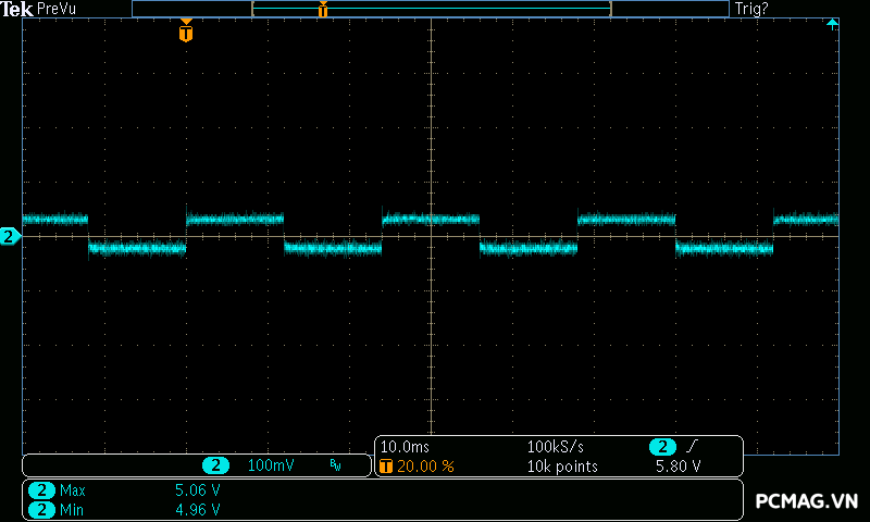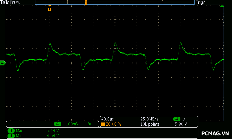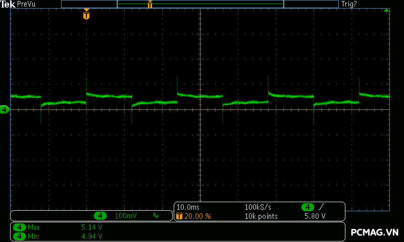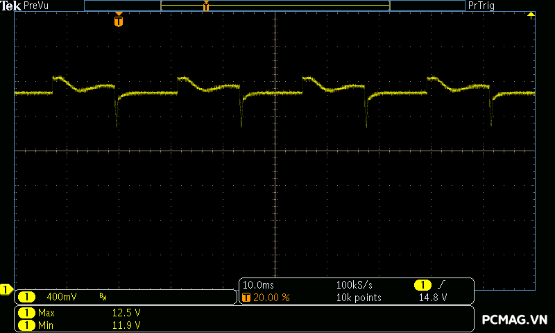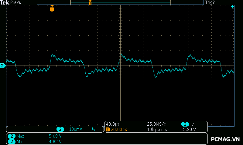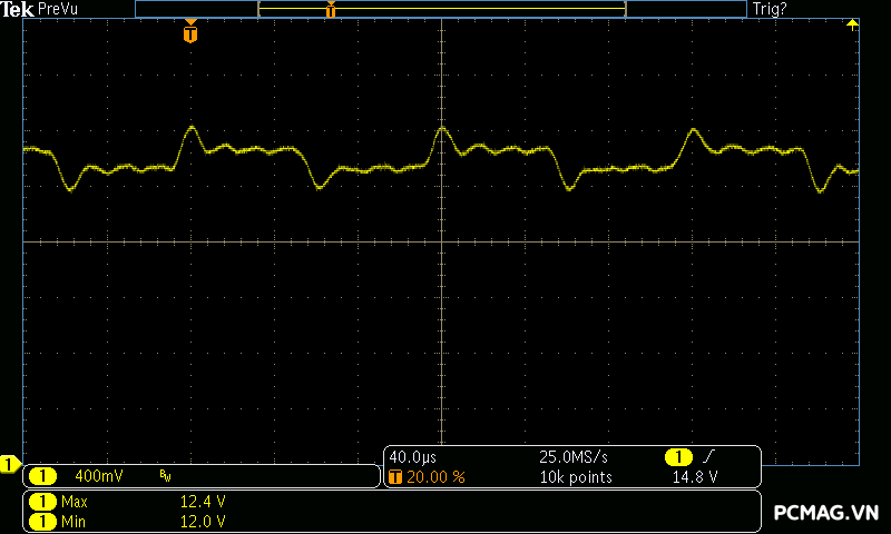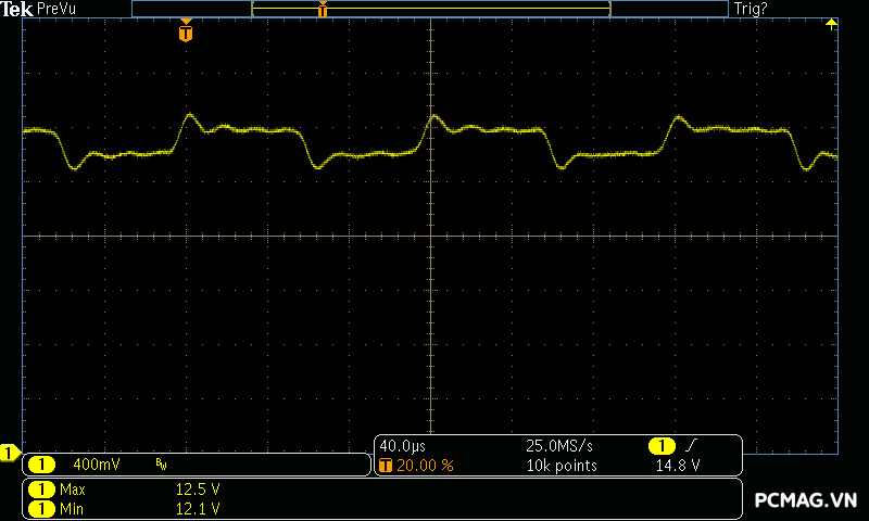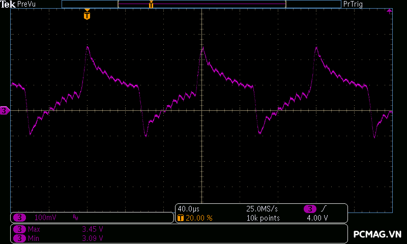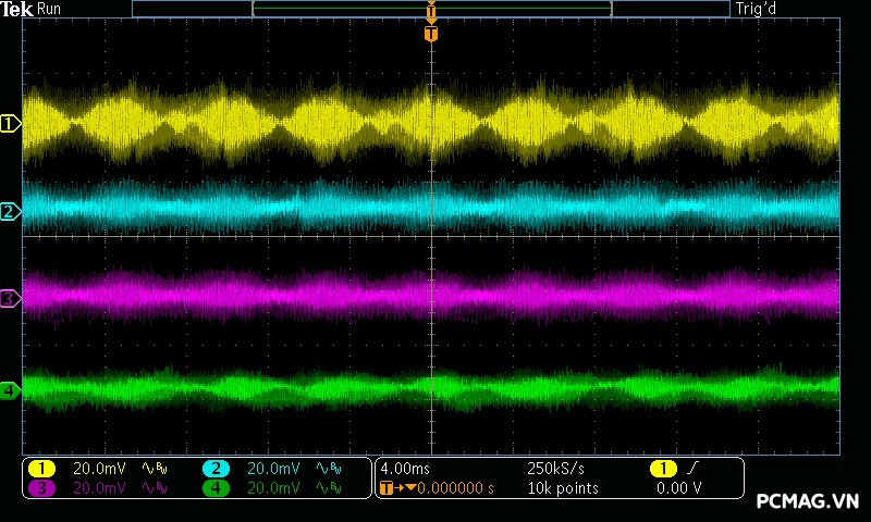 Trong bài đo nhiễu cao tần, VSP VGP650 PRO 650W cho kết quả khá ấn tượng khi toàn bộ các đường điện đều ghi nhận mức ripple dưới 30mV.