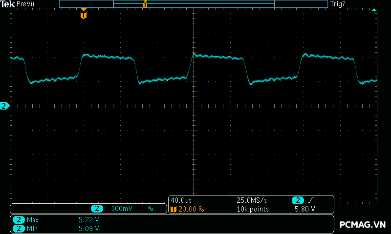 Nhờ thiết kế DC-to-DC, các đường điện 5V và 3.3V vẫn duy trì độ ổn định tốt ngay cả trong các bài test tải chéo (Cross Load), đáp ứng yêu cầu vận hành thực tế của nhiều cấu hình khác nhau.