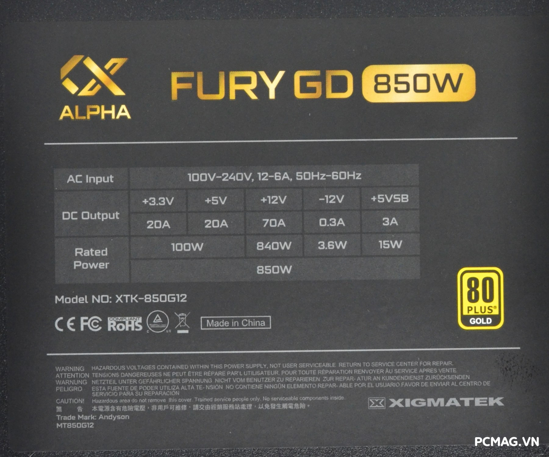 Xigmatek chính thức bước vào phân khúc nguồn cao cấp với dòng PSU Fury GD, đạt chuẩn ATX 3.0 / PCIe 5.0 đầu tiên của hãng. Trong bài đánh giá từ PCMAG, phiên bản Xigmatek Fury GD 850W gây ấn tượng mạnh khi được trang bị đầy đủ những công nghệ mới nhất: đầu cấp nguồn 12VHPWR công suất lên đến 600W, sử dụng 100% tụ điện Nhật Bản, chế độ Semi-fanless linh hoạt, cùng hiệu suất đạt chuẩn 80 Plus Gold.