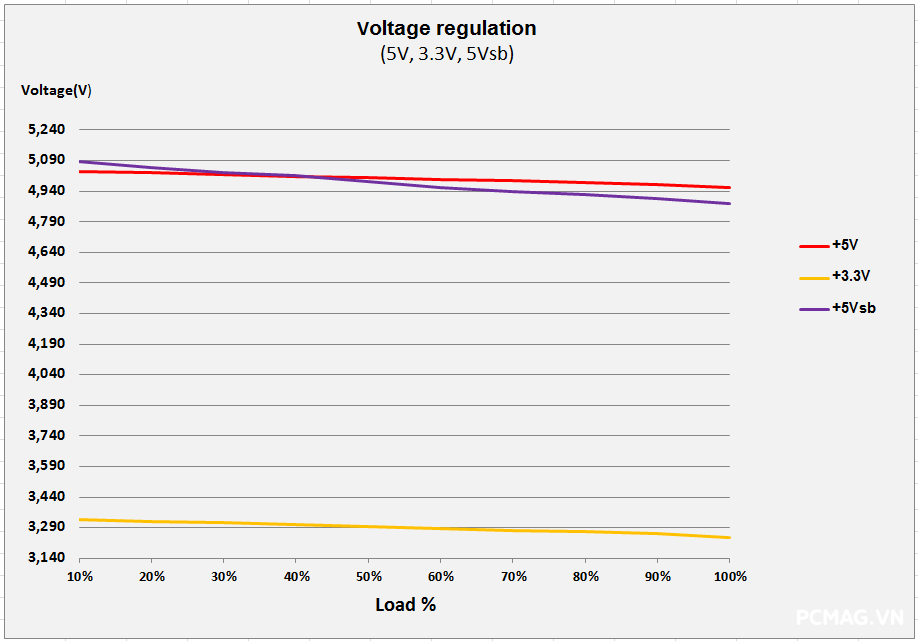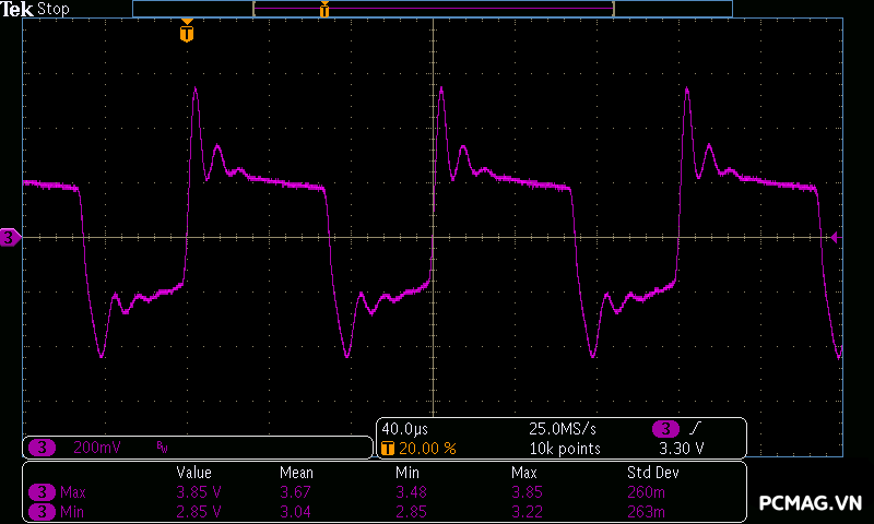 - Điện áp ổn định, vượt tốt bài test power excursion 200%