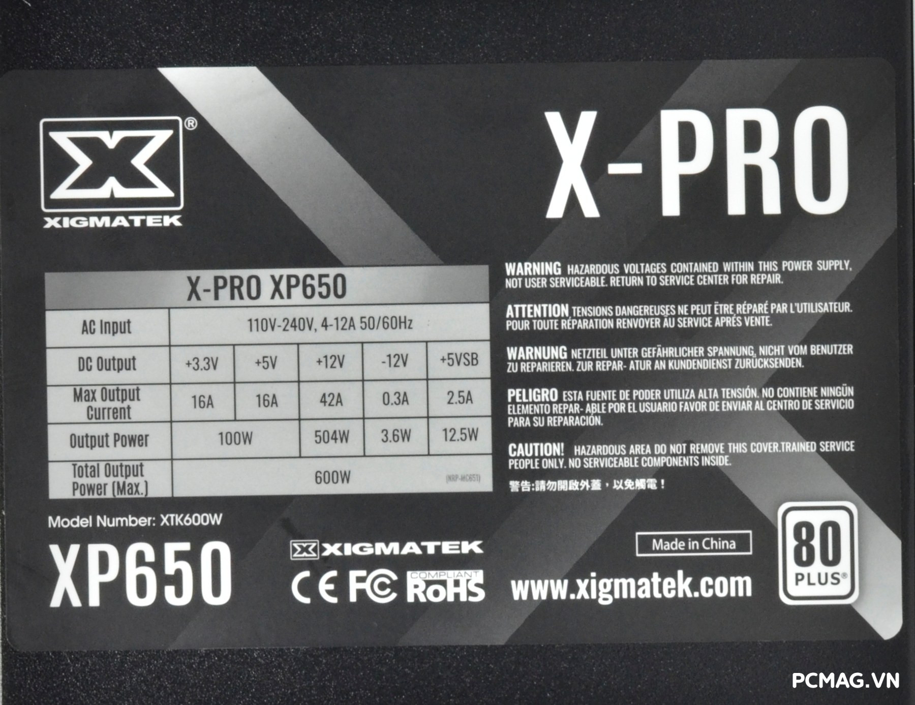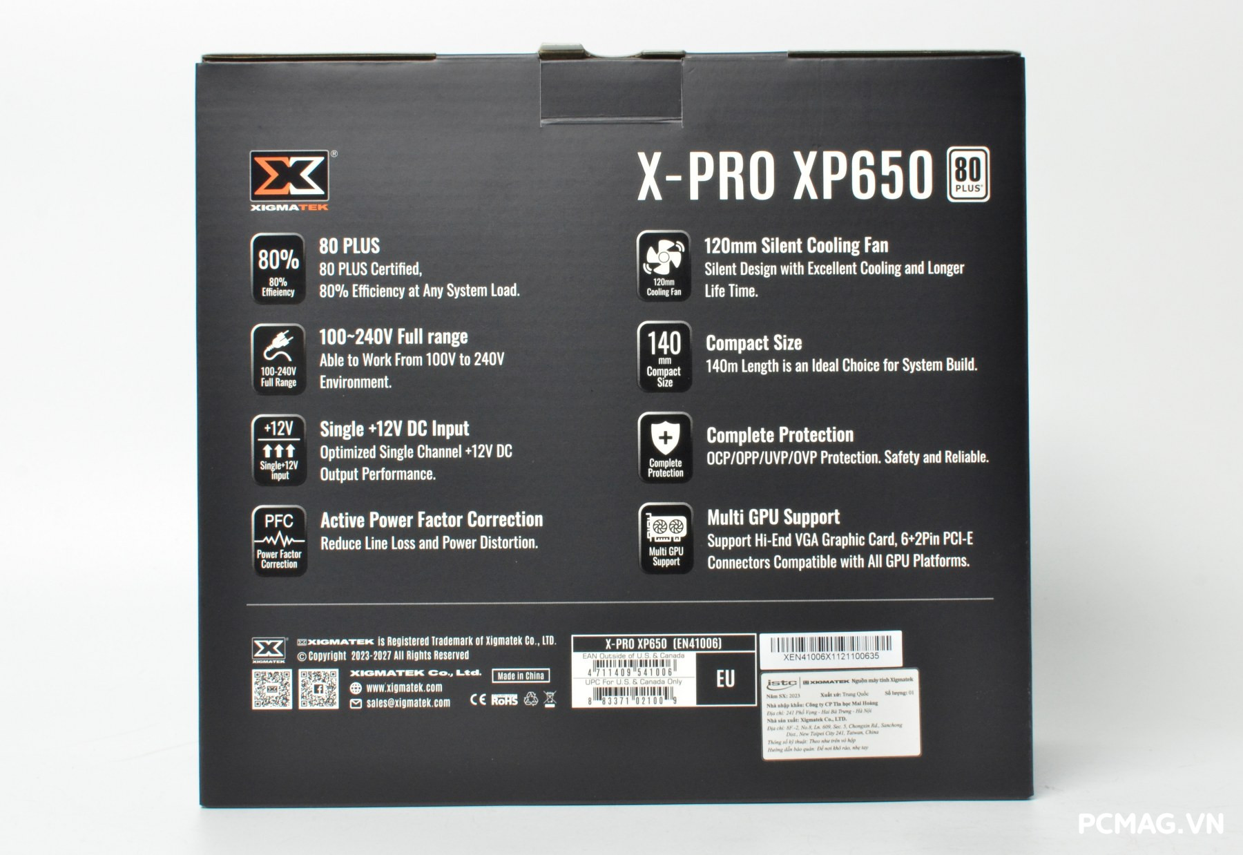 XP650 sở hữu công suất danh định 600W, sử dụng thiết kế single rail 12V với dòng tối đa 42A, đi kèm công nghệ Active PFC full-range (100–240Vac), đảm bảo khả năng hoạt động ổn định trong nhiều điều kiện điện áp khác nhau.