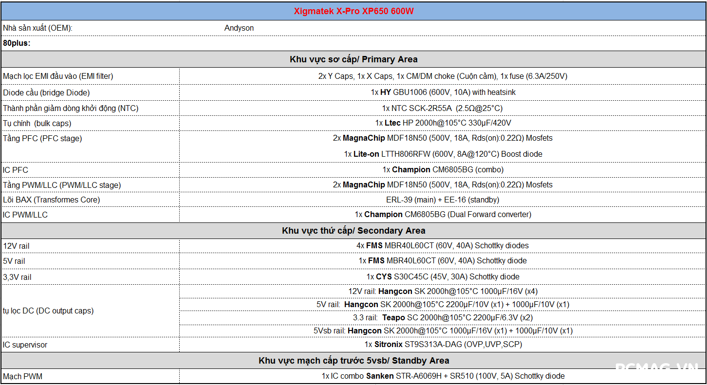 Với XP650, thiết kế được tối giản hơn khi cả hai tầng PFC và PWM đều sử dụng chung MOSFET MDF18N50 (18A) của MagnaChip, mang lại sự đồng bộ trong linh kiện.