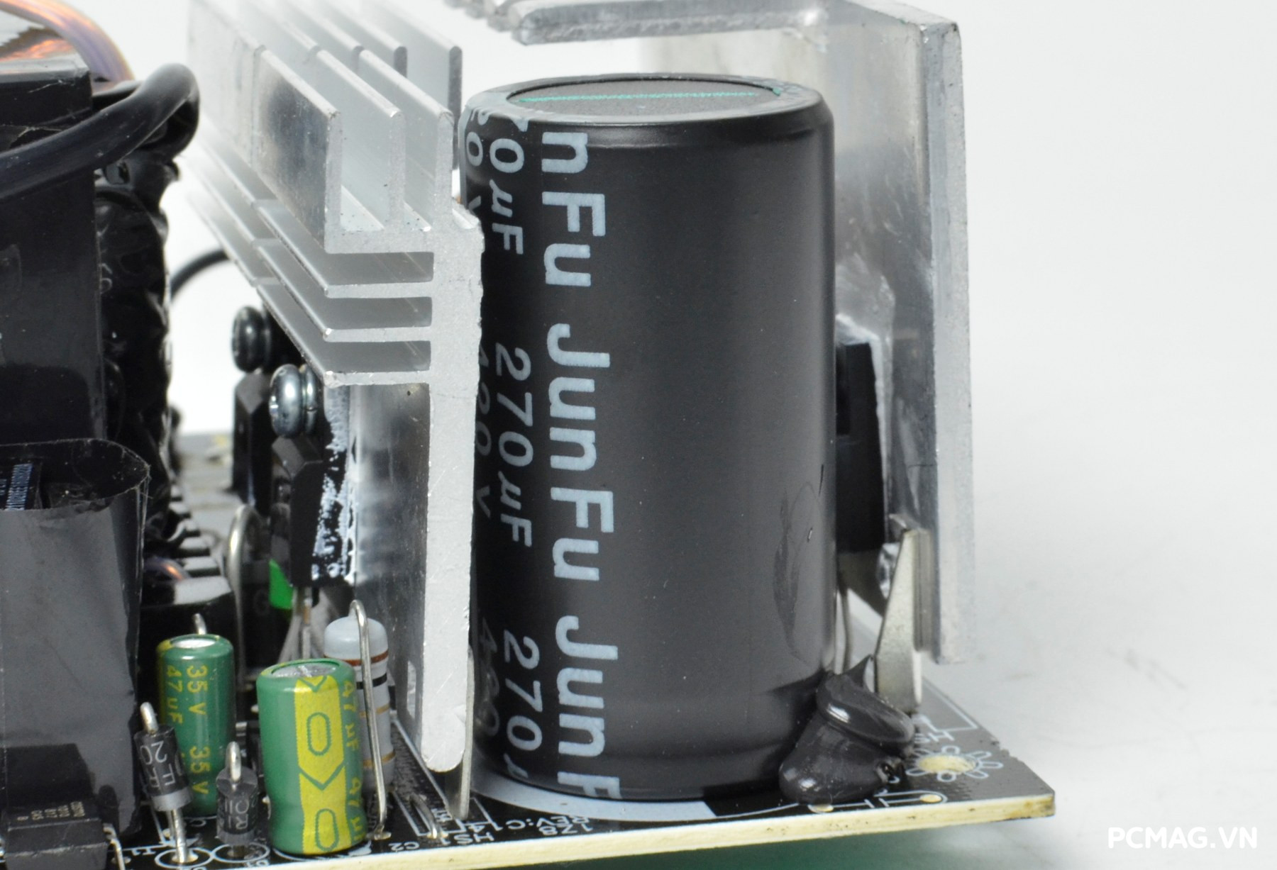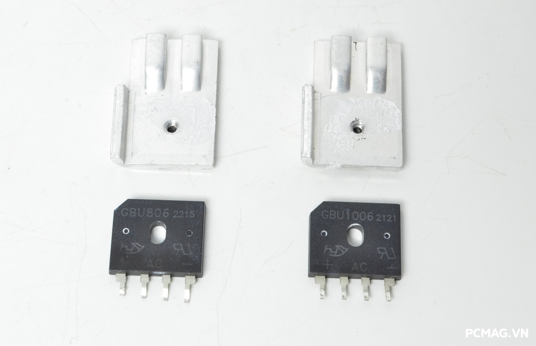 Các diode cầu này đều được trang bị phiến tản nhiệt riêng, giúp đảm bảo khả năng vận hành ổn định, đặc biệt trong điều kiện điện áp đầu vào thấp (100Vac) mà vẫn hạn chế tình trạng quá nhiệt.