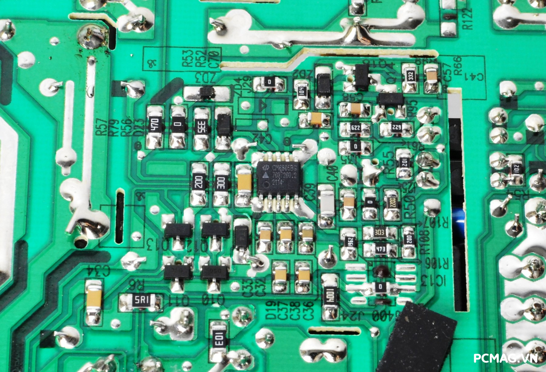 IC điều khiển dao động cho cả hai tầng vẫn là Champion CM6805BG, đảm nhiệm vai trò kiểm soát hoạt động tổng thể của mạch nguồn.