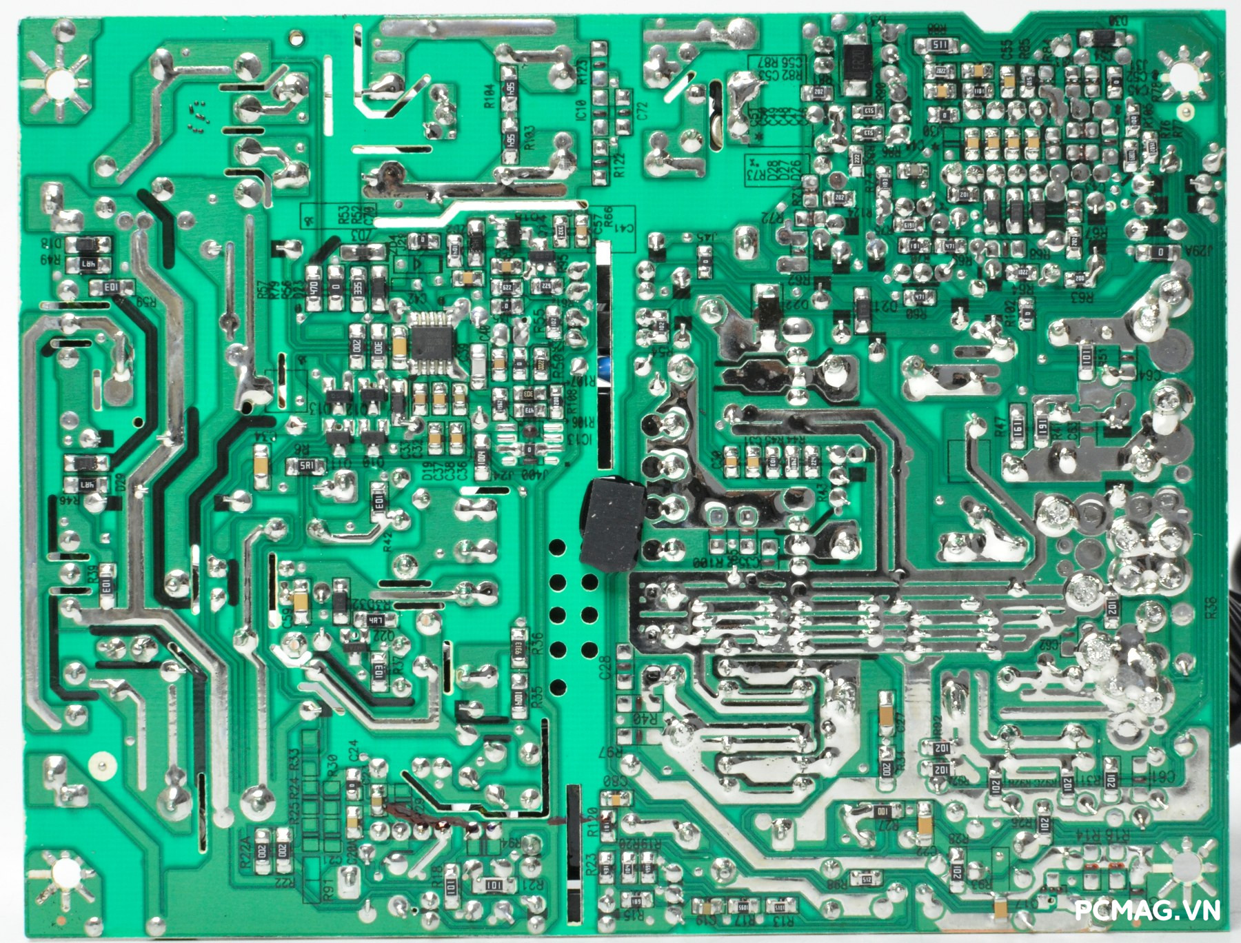 Tại khu vực chỉnh lưu đầu ra của biến áp chính, mạch sử dụng các diode xung (Schottky diode), với điểm khác biệt chủ yếu nằm ở số lượng diode đảm nhiệm cho đường 12V giữa các phiên bản.
