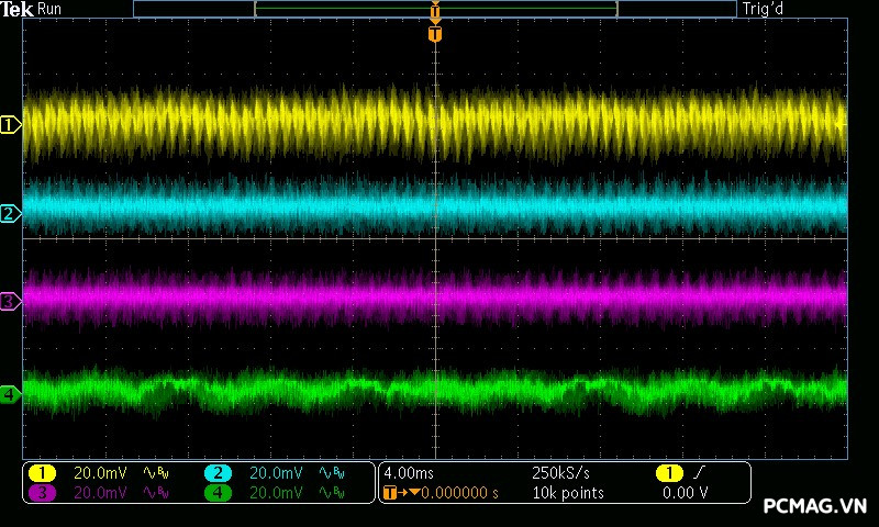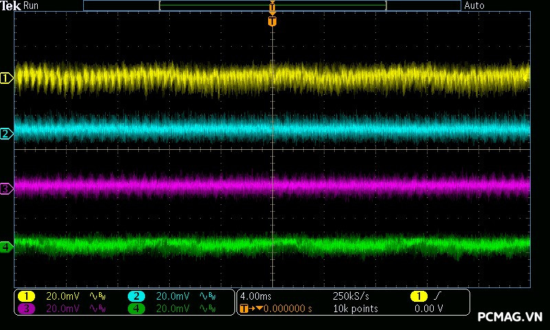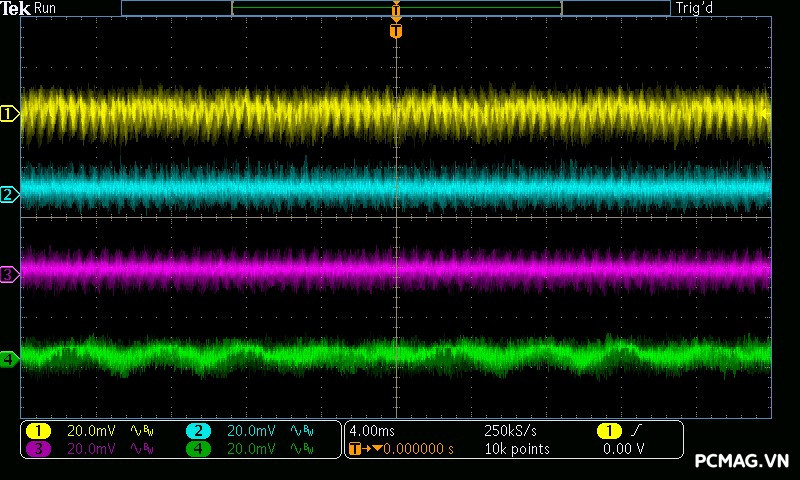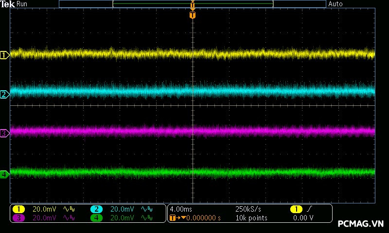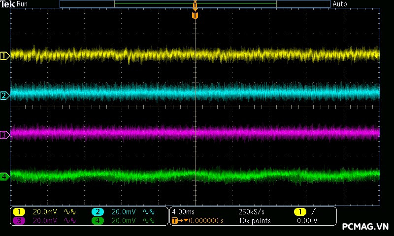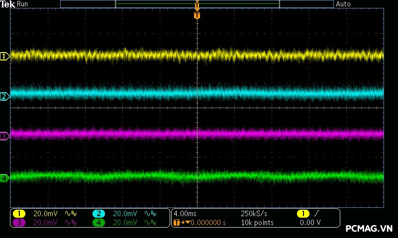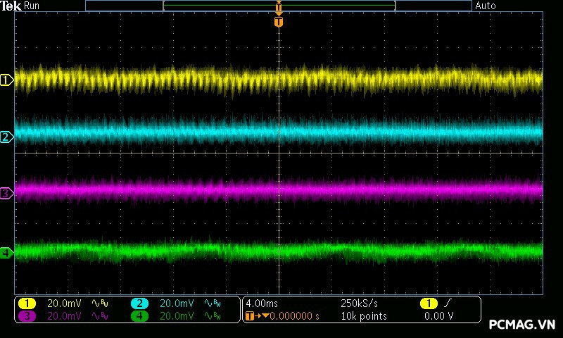 Trong bài kiểm tra ripple và noise, TW-P750G cho kết quả ở mức khá khi biên độ nhiễu trên tất cả các đường điện đều được kiểm soát dưới ngưỡng 50mV, đáp ứng tốt yêu cầu vận hành ổn định cho hệ thống.