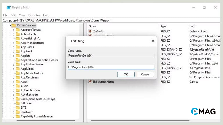 Bước 6: Điền C:Program Files (x86) vào ô Value data và nhấn OK để cập nhật.