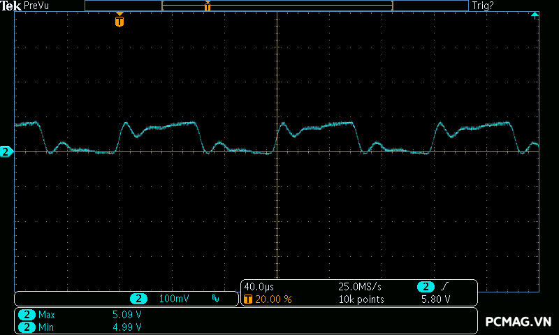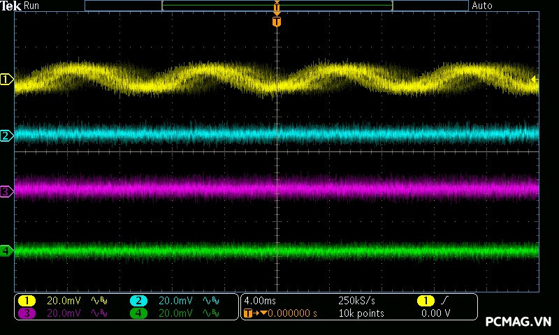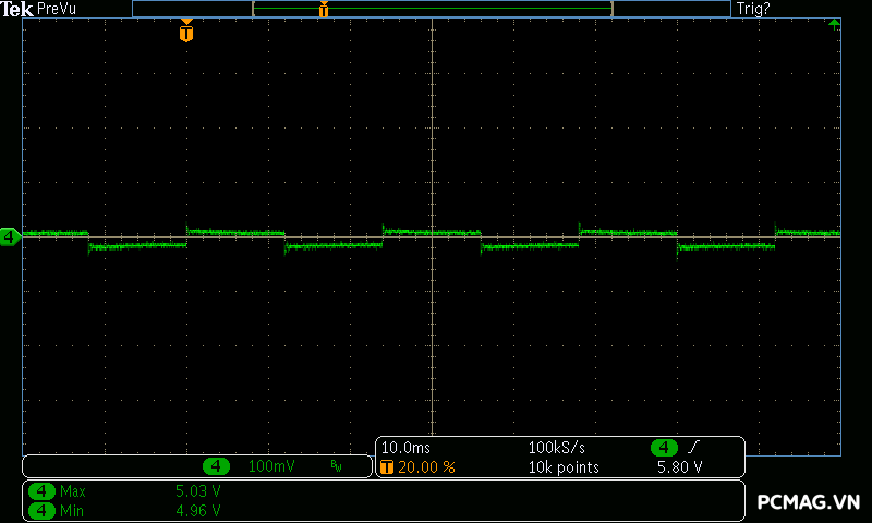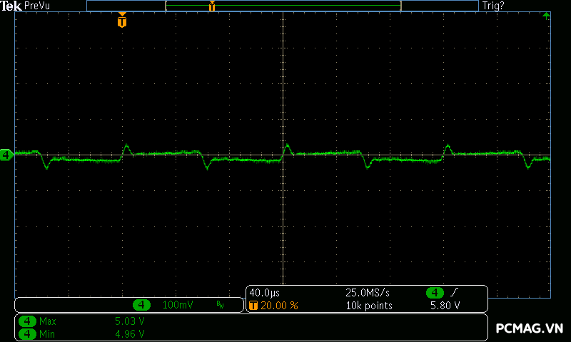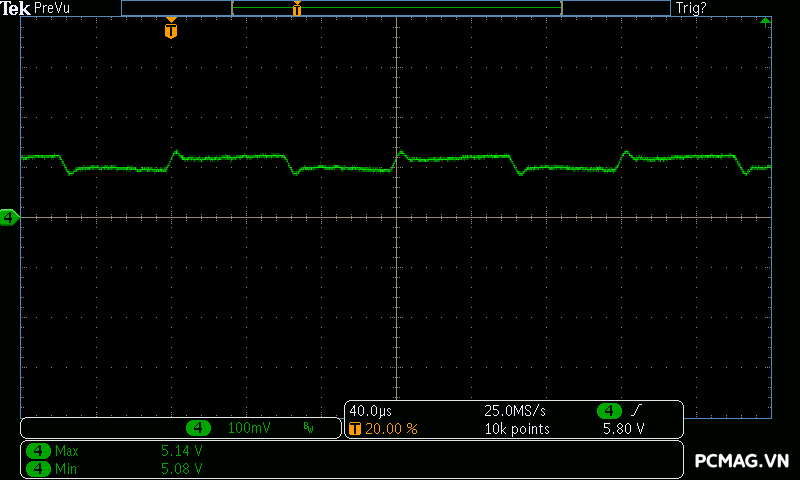 Trong các phép thử tải biến thiên, PMT850 ATX3.1/PCIe 5.1 cho thấy mức dao động điện áp trên các đường điện đều nằm trong giới hạn mà chuẩn ATX yêu cầu.
