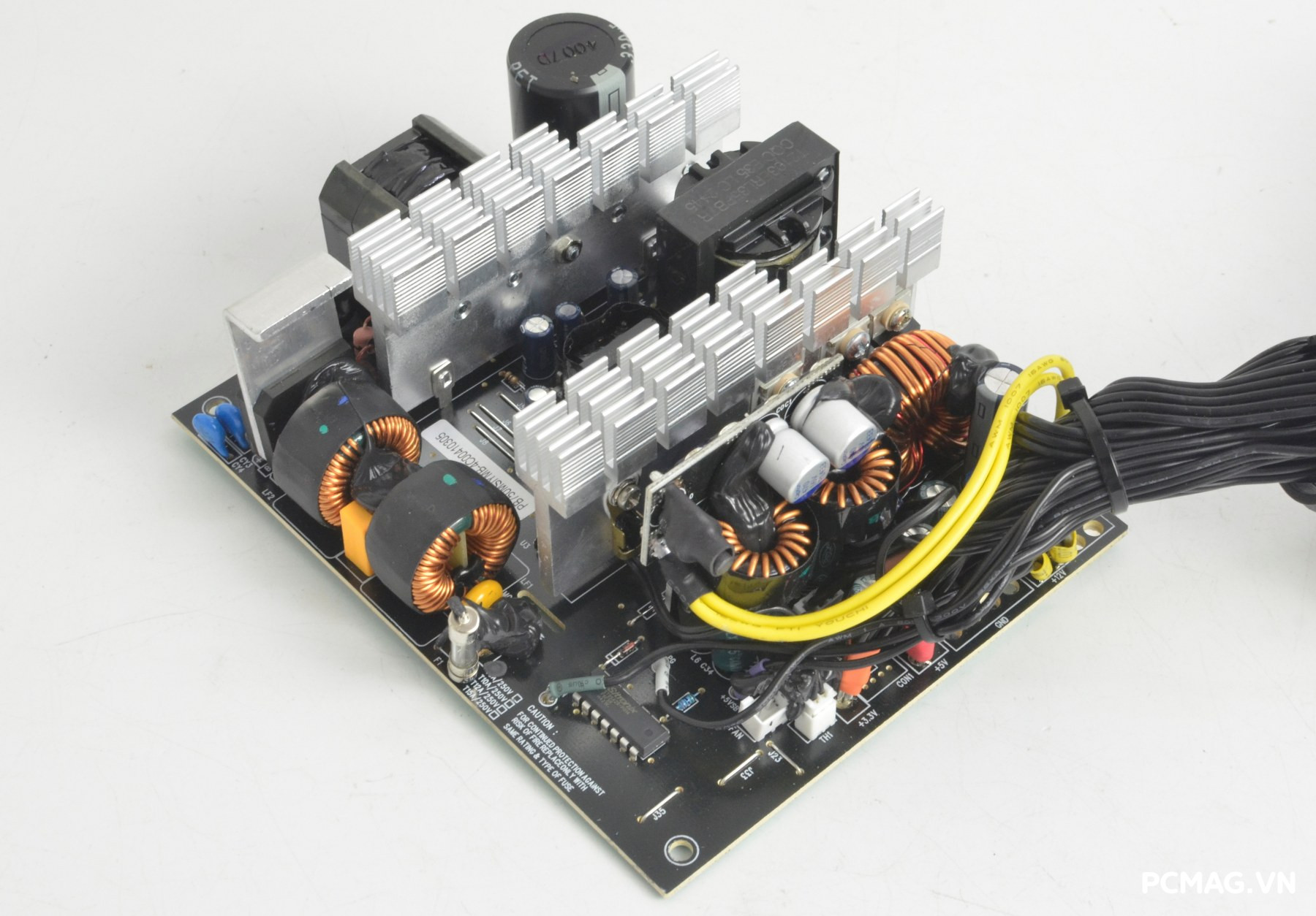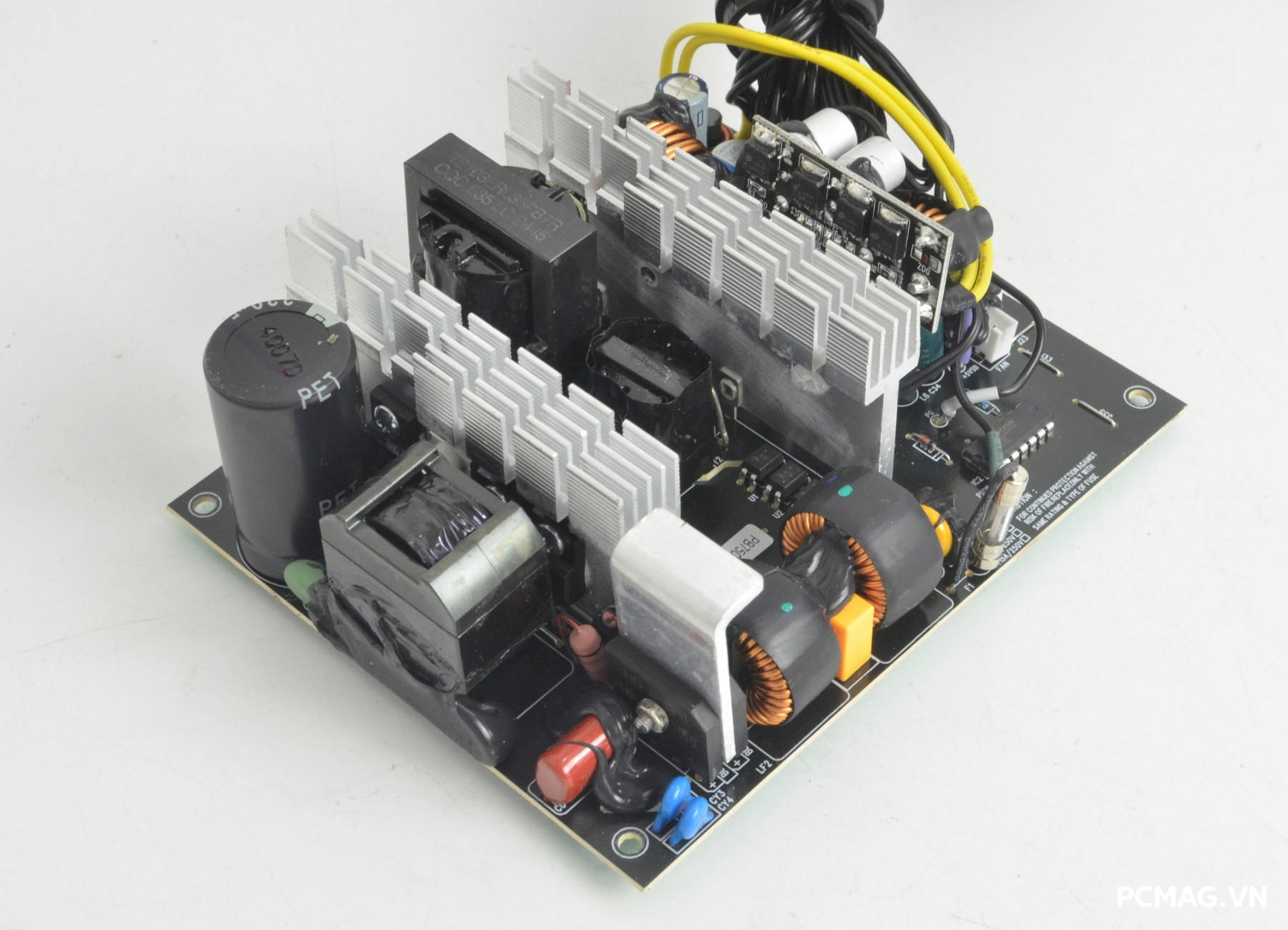 Bên trong, MSI MAG A650BNL vẫn sử dụng platform gần như tương đồng với thế hệ MAG A650BN, áp dụng thiết kế Active PFC kết hợp Dual Forward và VRM (DC to DC) nhằm đảm bảo hiệu suất và độ ổn định điện áp. Tuy nhiên, MSI đã có những điều chỉnh nhỏ trong cách bố trí linh kiện, giúp luồng gió từ quạt làm mát lưu thông hiệu quả hơn, góp phần cải thiện khả năng tản nhiệt trong quá trình vận hành.
