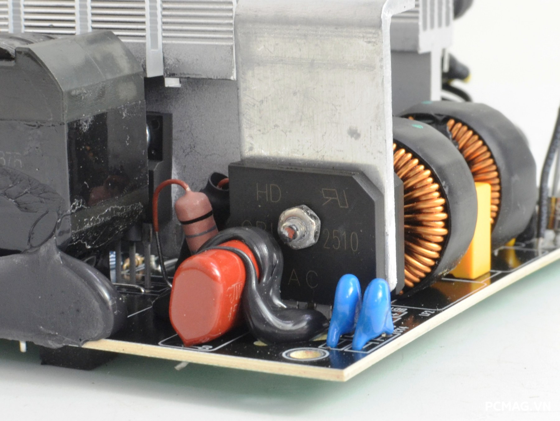 Mặc dù là PSU full-range, MSI MAG A650BNL vẫn được MSI trang bị một cặp diode cầu GBU2510 (25A x2) với mức chịu tải được đánh giá là dư dả so với công suất danh định 650W của bộ nguồn. Các diode này được gắn trên phiến tản nhiệt riêng, giúp đảm bảo khả năng hoạt động ổn định trong thời gian dài.
