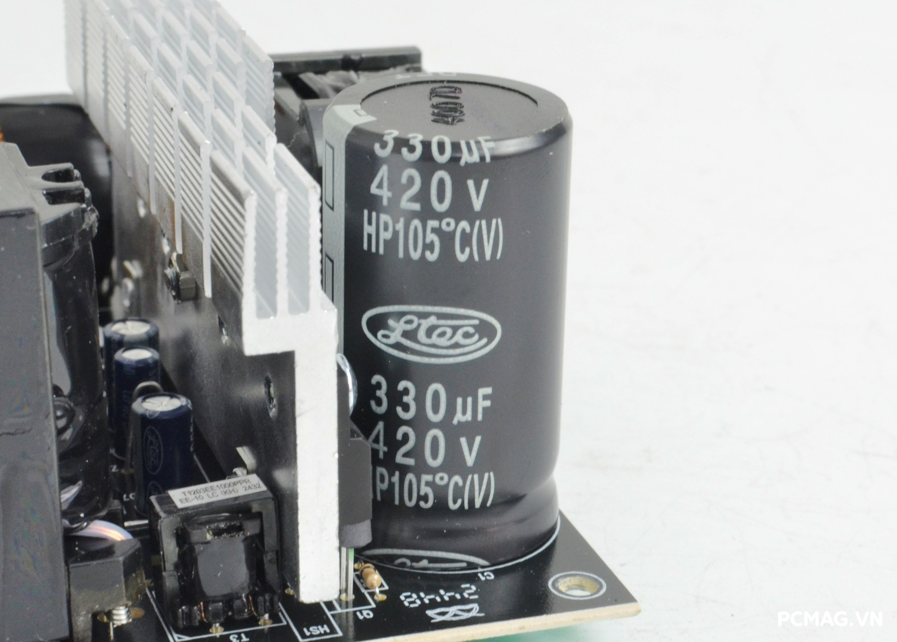 Ở phía tụ nguồn chính, MAG A650BNL sử dụng tụ điện đến từ hãng Ltec với thông số 420V / 330µF, đáp ứng tốt yêu cầu lưu trữ và ổn định điện áp cho hệ thống.