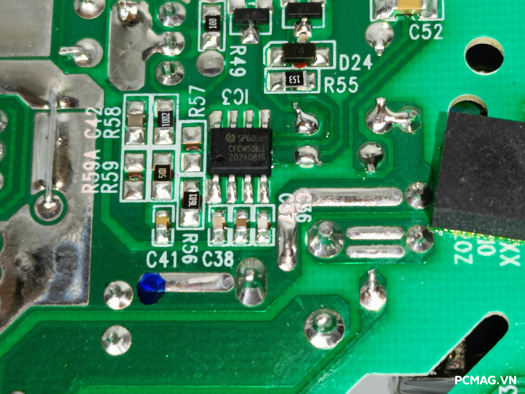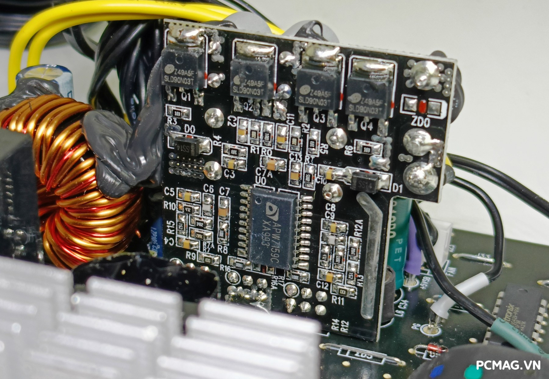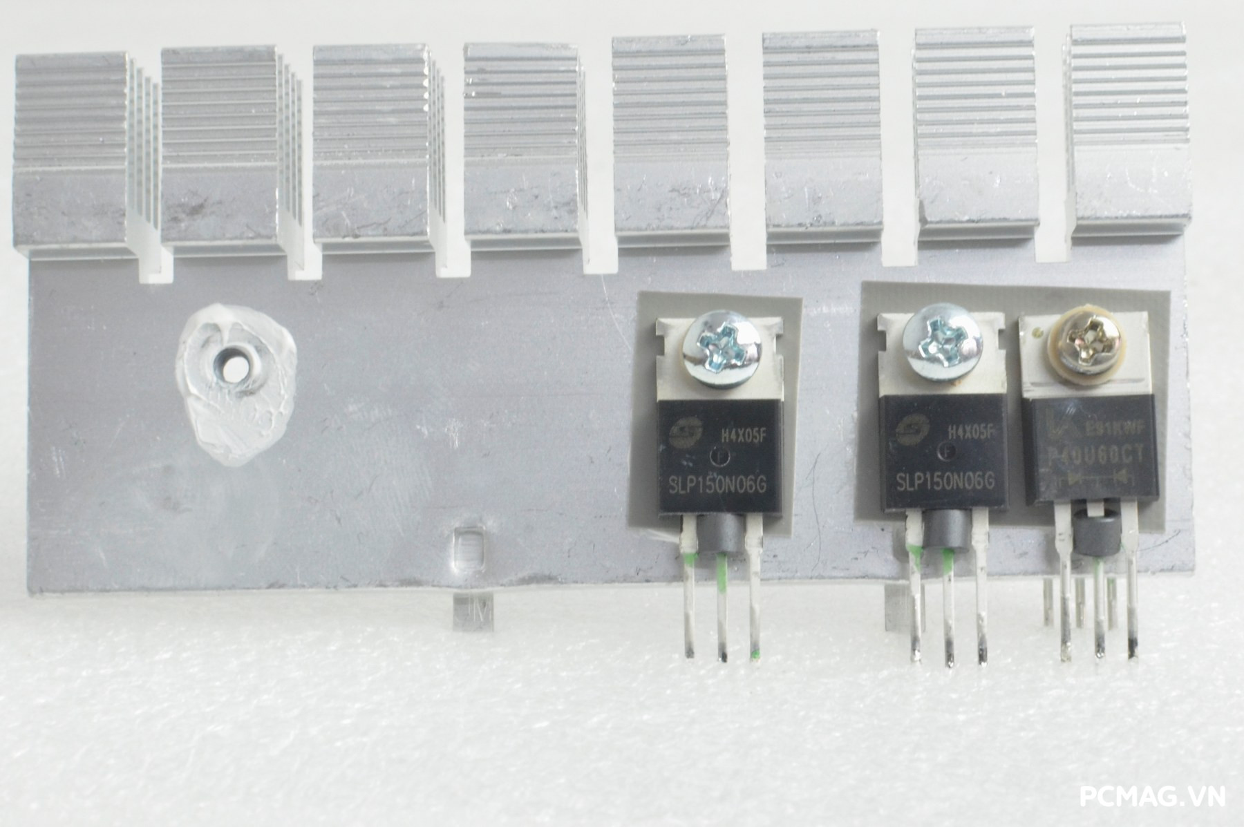 MSI MAG A650BNL áp dụng thiết kế chỉnh lưu đường 12V dạng bán đồng bộ (Semi-SR), kết hợp giữa MOSFET và diode nhằm cân bằng giữa hiệu suất và chi phí. Cụ thể, bộ nguồn sử dụng 2 MOSFET SLP150N06G (150A x2) hoạt động song song cùng cặp diode xung P40U60CT (40A x2) để đảm bảo khả năng cấp dòng ổn định cho rail 12V.