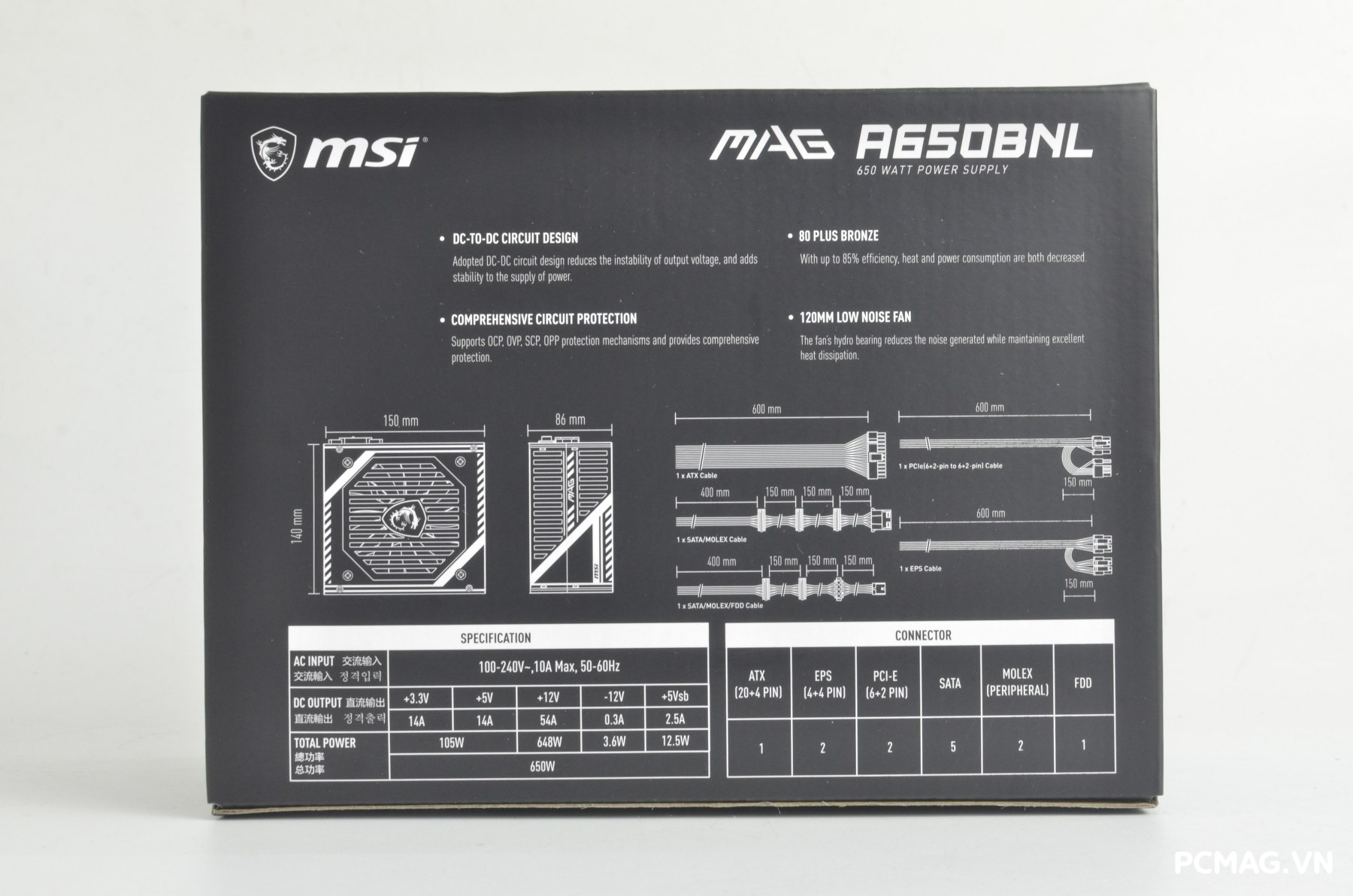 - I. Hộp và phụ kiện MSI MAG A650BNL 650W