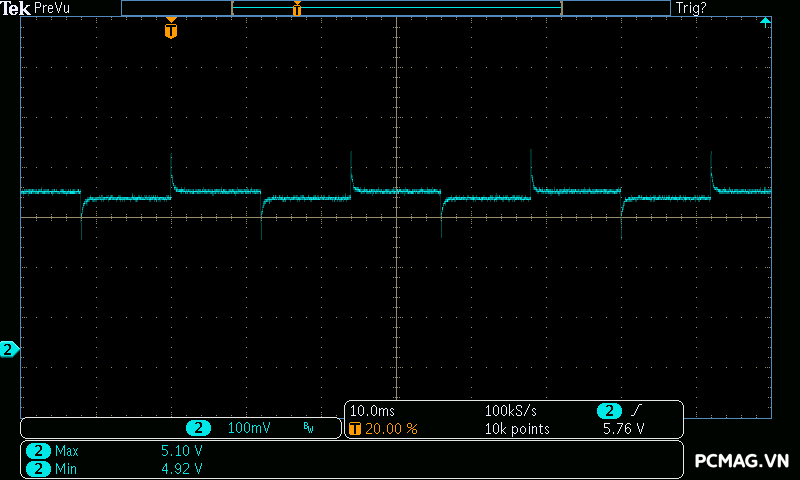 Trong bài kiểm tra dòng khởi động, MSI MAG A650BNL ghi nhận mức inrush current khoảng 90A, được đánh giá là ở mức trung bình trong phân khúc, đảm bảo an toàn và phù hợp với đặc tính vận hành của các bộ nguồn công suất 650W hiện nay.