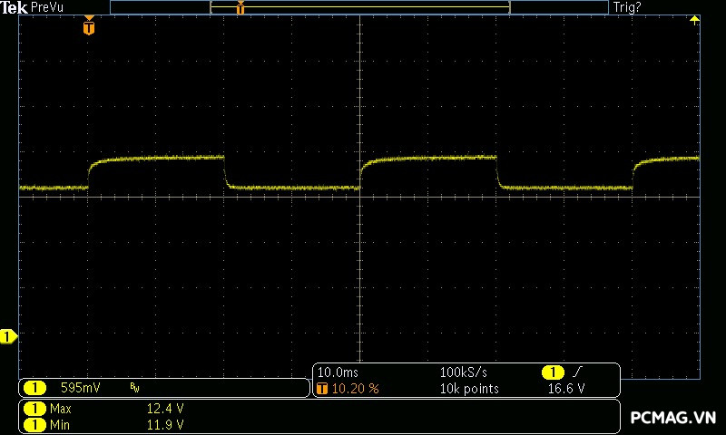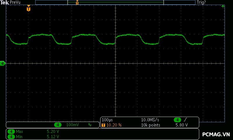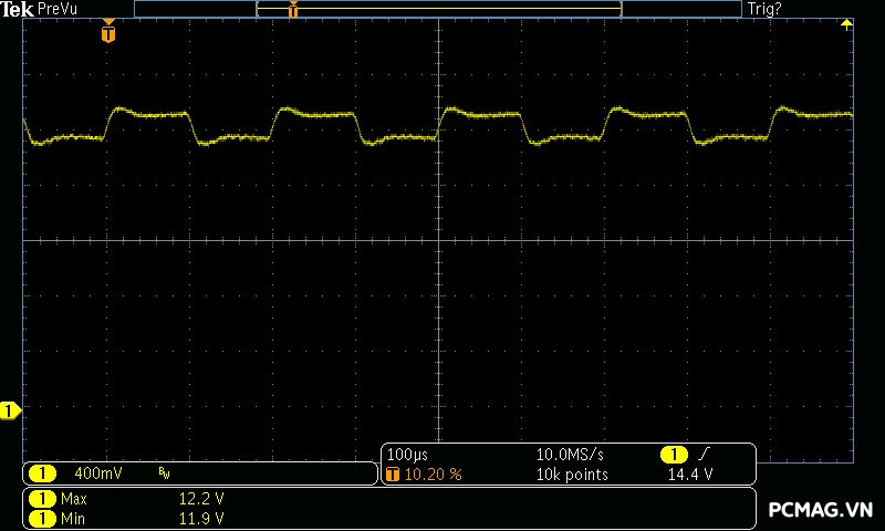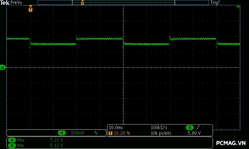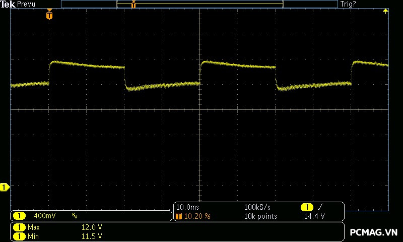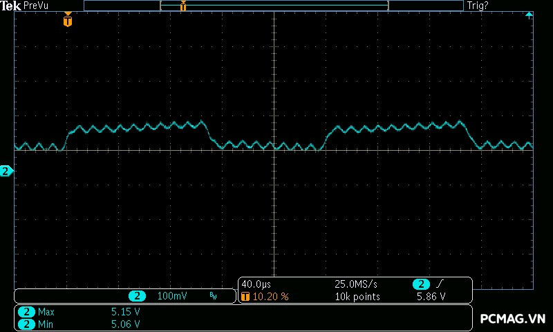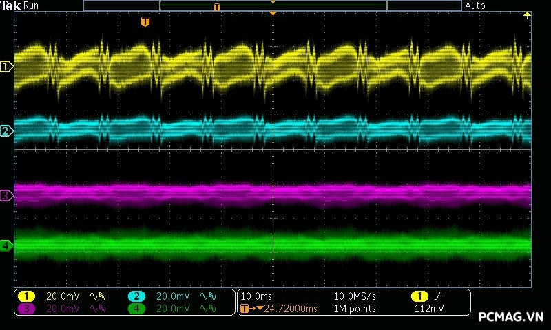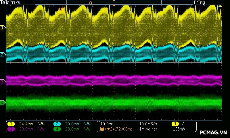 Beta P700 700W ghi nhận mức ripple noise ở mức tương đối ổn. Đường 12V đạt khoảng 80mV tại tải tối đa, trong khi các đường điện còn lại giữ mức dao động quanh ±20mV, vẫn nằm trong giới hạn chấp nhận được của chuẩn ATX.