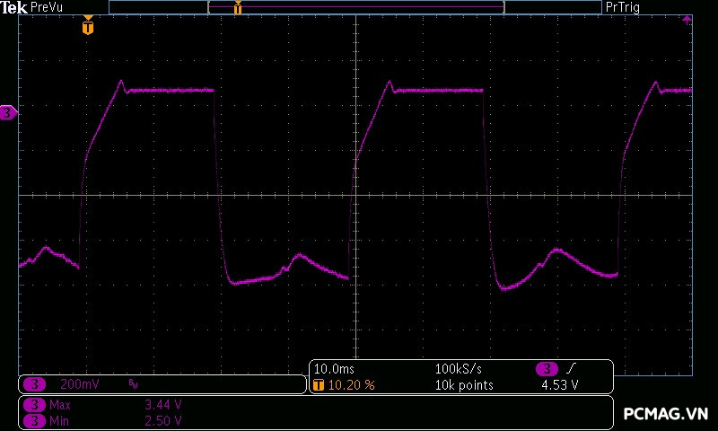 Tương tự nhiều mẫu nguồn giá rẻ trong phân khúc phổ thông, Beta P700 700W tiếp tục gặp hạn chế ở đường 3.3V, không thể vượt qua bài kiểm tra tải dung kháng theo chuẩn ATX 3.0. Riêng đường 5V chỉ ghi nhận mức dao động nhẹ khoảng +0.02V, không gây ảnh hưởng đáng kể đến hệ thống.