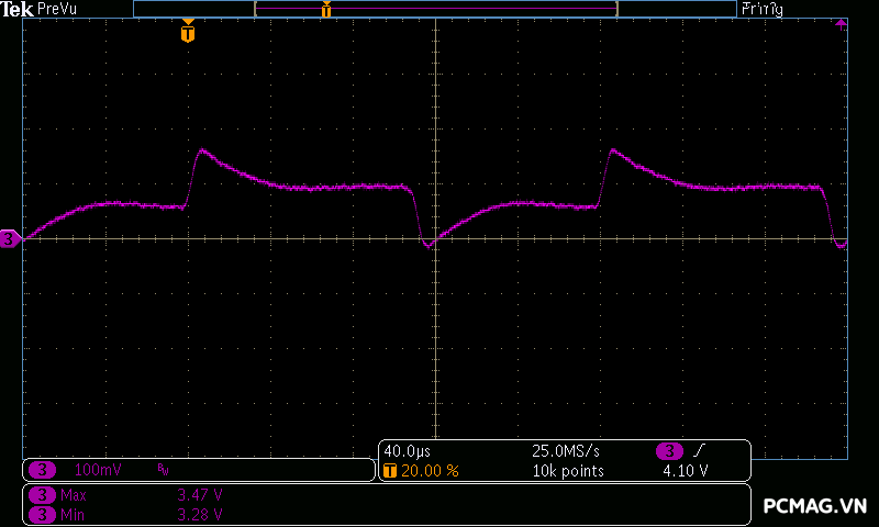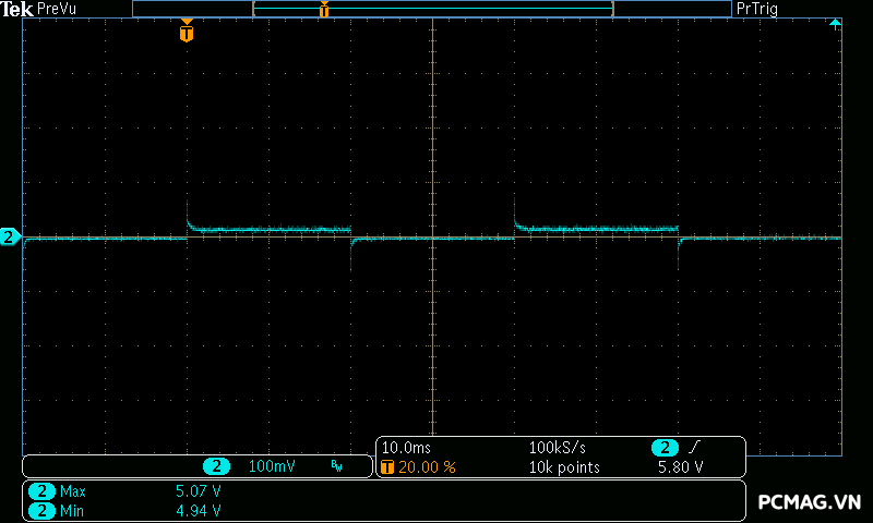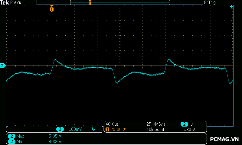 Đặc biệt, trong bài test mô phỏng Power Excursion tải tức thời đột biến thường xuất hiện trên card đồ họa hiện đại, PSU vượt qua dễ dàng, giữ điện áp ổn định và không xảy ra tình trạng sập nguồn, chứng minh khả năng đáp ứng tải đột ngột rất tốt.