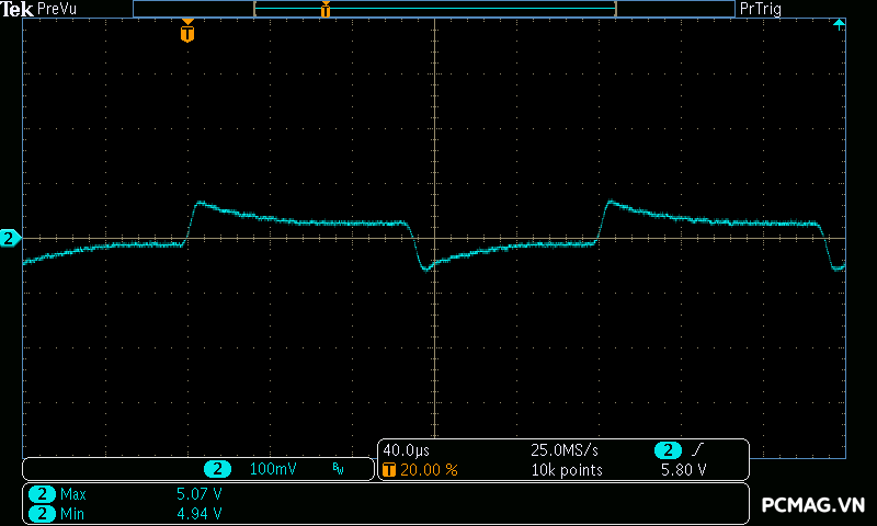 Đặc biệt, trong bài test mô phỏng Power Excursion tải tức thời đột biến thường xuất hiện trên card đồ họa hiện đại, PSU vượt qua dễ dàng, giữ điện áp ổn định và không xảy ra tình trạng sập nguồn, chứng minh khả năng đáp ứng tải đột ngột rất tốt.
