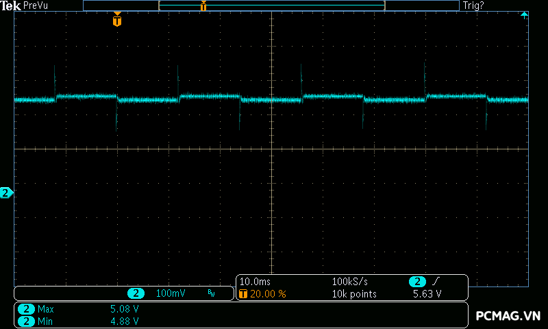 Trong bài kiểm tra dòng khởi động, VSP MegaMax VS650D ghi nhận mức inrush current khoảng 86A, thuộc mức trung bình trong phân khúc, đảm bảo an toàn và ổn định cho hệ thống khi bật nguồn.