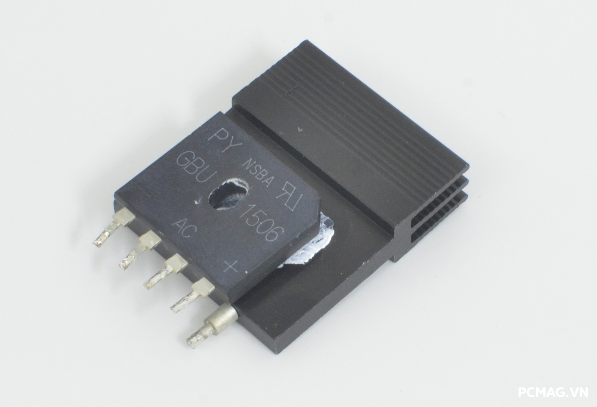 MegaMax VS750D được trang bị một lớp lọc nhiễu EMI, bố trí ngay tại đầu vào nguồn. Kế bên là diode cầu GBU1506 (15A), điểm đáng chú ý là linh kiện này được gắn thêm khối tản nhiệt riêng, giúp cải thiện khả năng thoát nhiệt và đảm bảo độ ổn định khi hoạt động ở công suất cao. So với phiên bản công suất thấp hơn là VS650D, cách hoàn thiện này cho thấy sự nâng cấp rõ rệt nhằm đáp ứng mức tải 750W hiệu quả hơn.